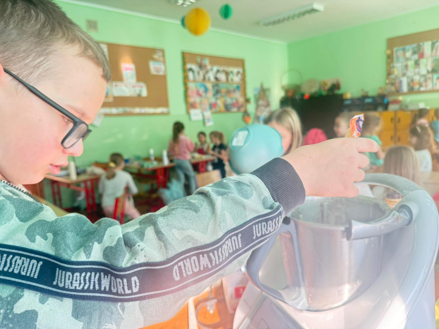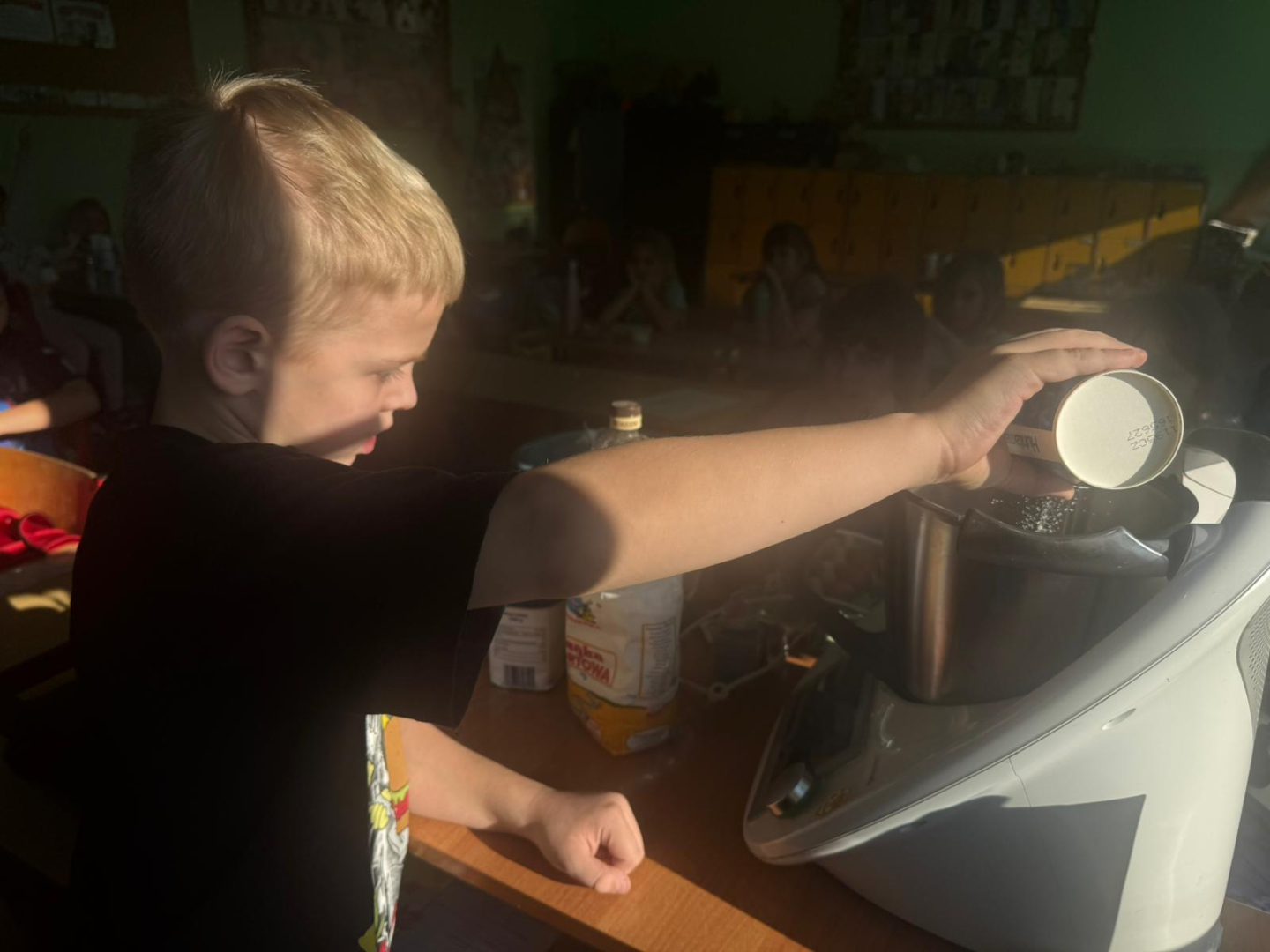 Już pierwszego dnia zajęć dodatkowych mali kucharze zmierzyli się z przygotowaniem pysznych, chrupiących gofrów. Okazało się, że nie jest to trudne zadanie — zwłaszcza gdy do dyspozycji mieliśmy Thermomix, gofrownicę oraz wszystkie potrzebne składniki.