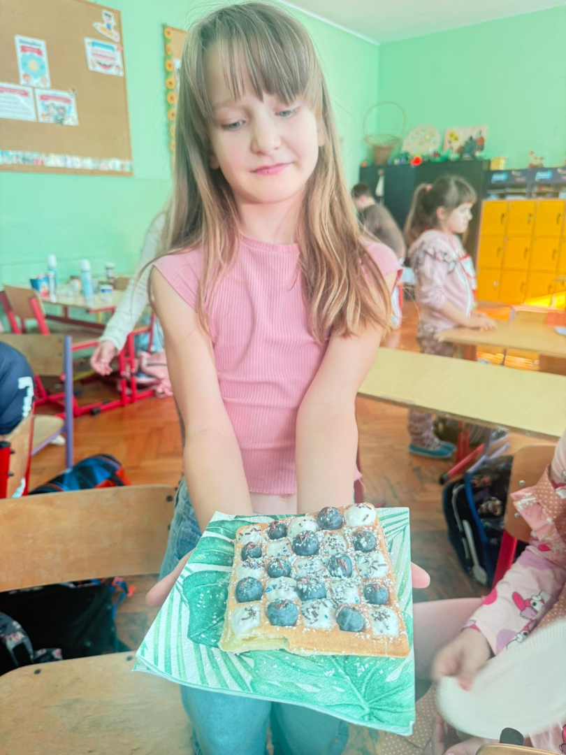 Pierwszy dzień tygodnia kulinarnego był pełen uśmiechu, zapachu świeżych gofrów i twórczej zabawy. Czekamy na kolejne kulinarne wyzwania i jesteśmy pewni, że uczniowie klasy 2a poradzą sobie z nimi równie wspaniale! 🍓🥞🍫
