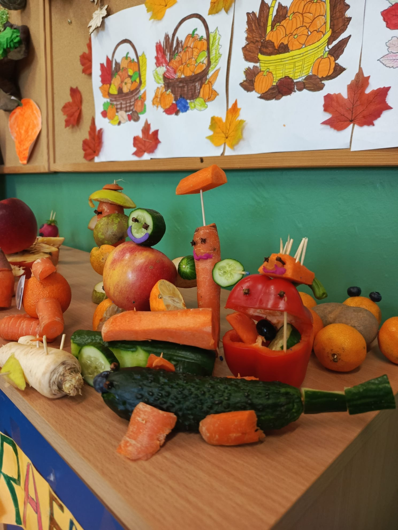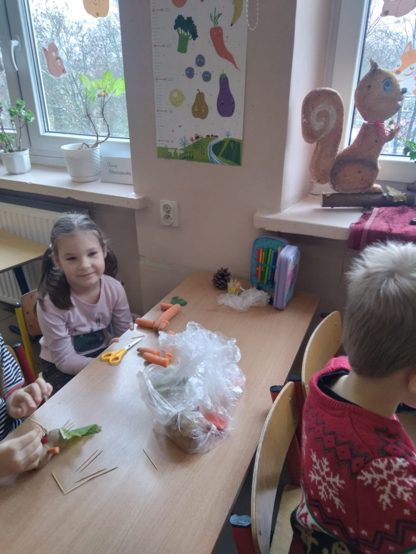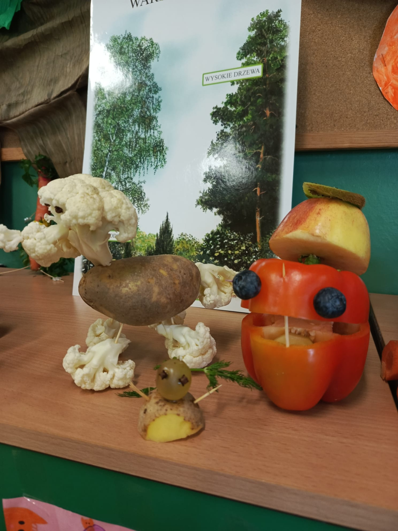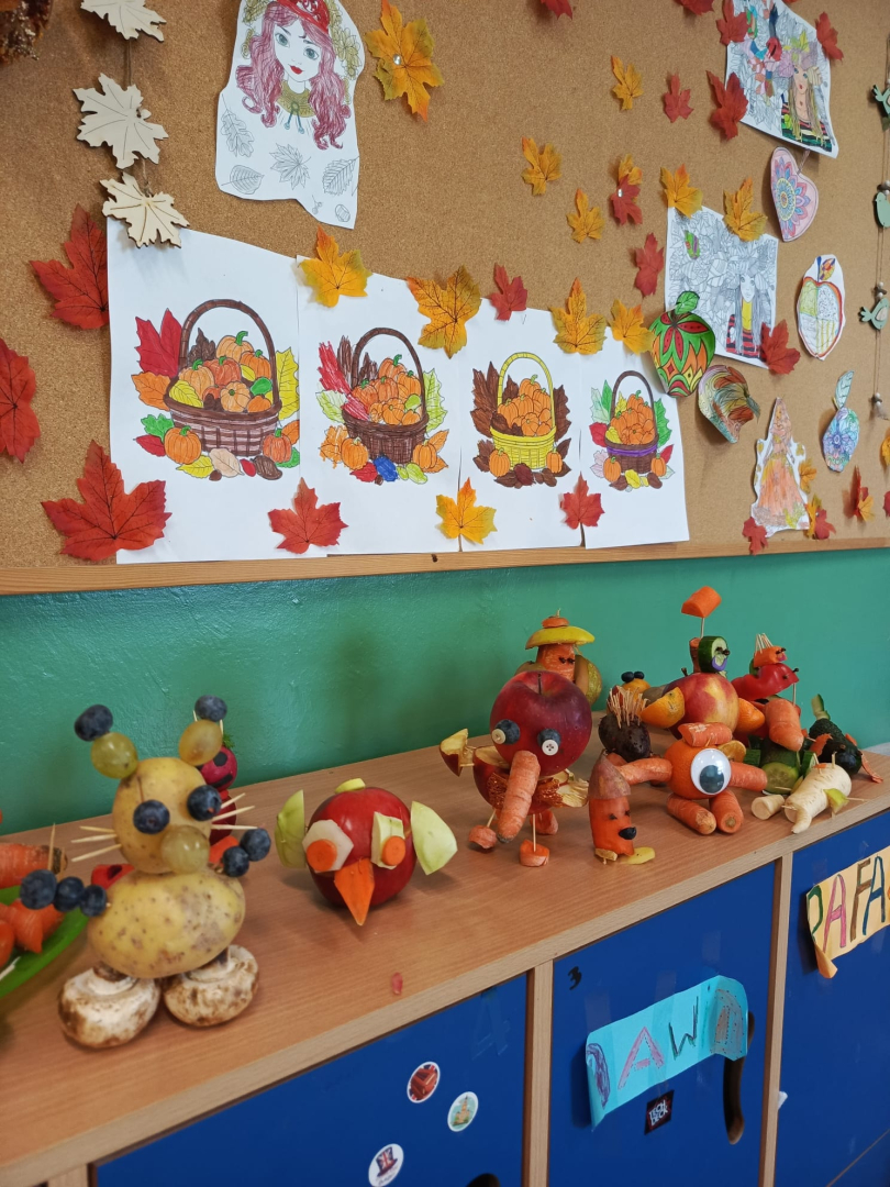 Dzieci wykonywały prace z warzyw, owoców oraz innych darów jesieni. Były to postacie realne, lub wymyślone. Dzieci wspaniale uruchomiły swój potencjał. Prace, które stworzyły są ciekawe i godne podziwu. Wykonanie Jesiennych cudaków sprawiło dzieciom wiele radości i zabawy. Piękne prace! Gratulacje.