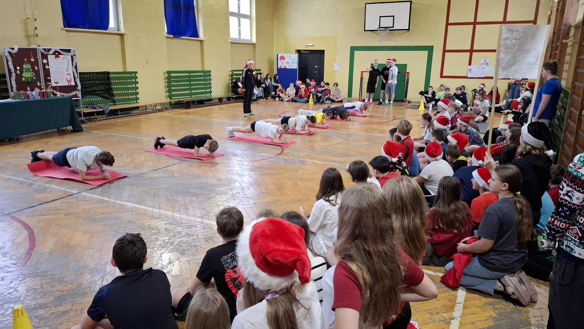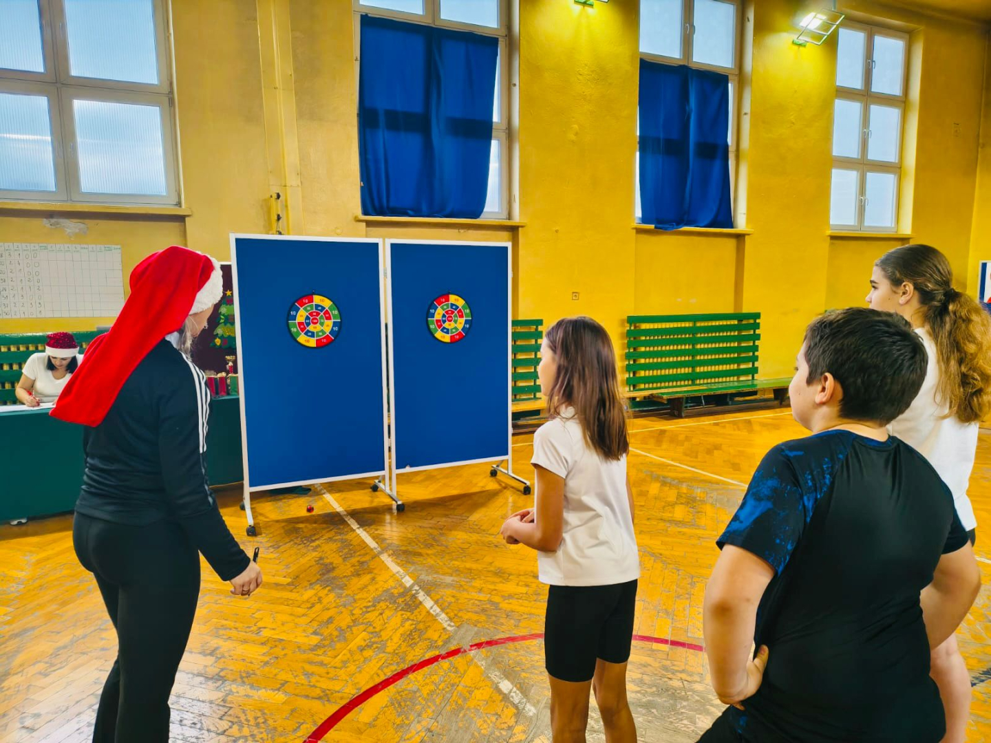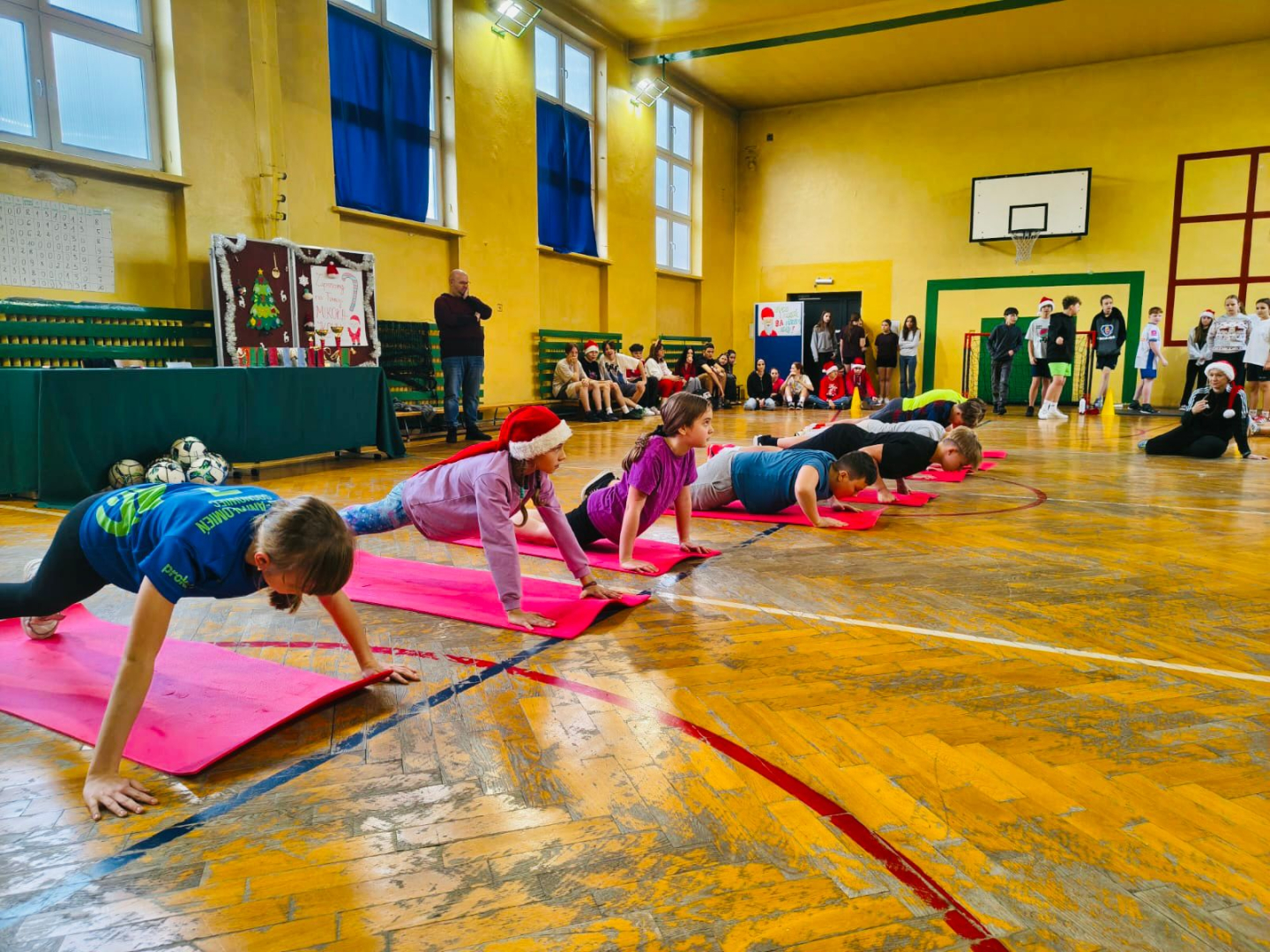 5 grudnia 2025 roku w naszej szkole odbył się Szkolny Turniej Mikołajkowy pod hasłem Wiedza + Sport, który już na stałe wpisał się w kalendarz szkolnych wydarzeń.