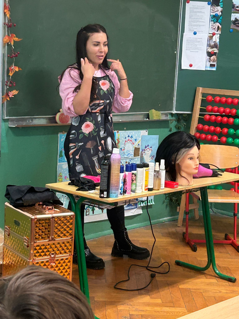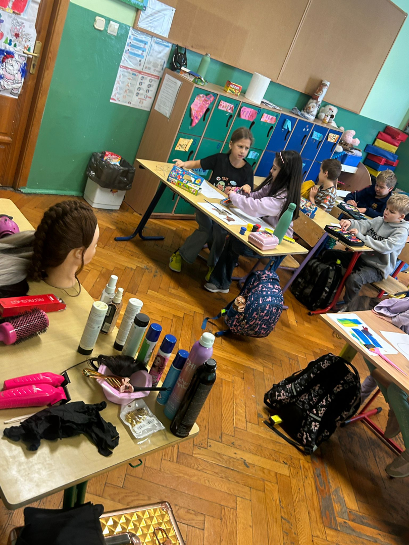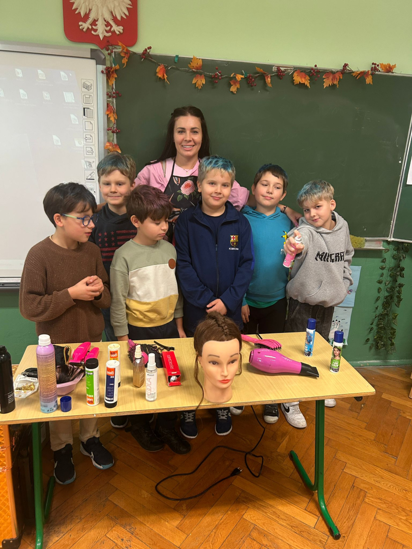 W ramach zajęć „Rodzic Ekspert” w klasie 3a gościła mama Dawida, pani Natalia, wykonująca zawód fryzjerki.