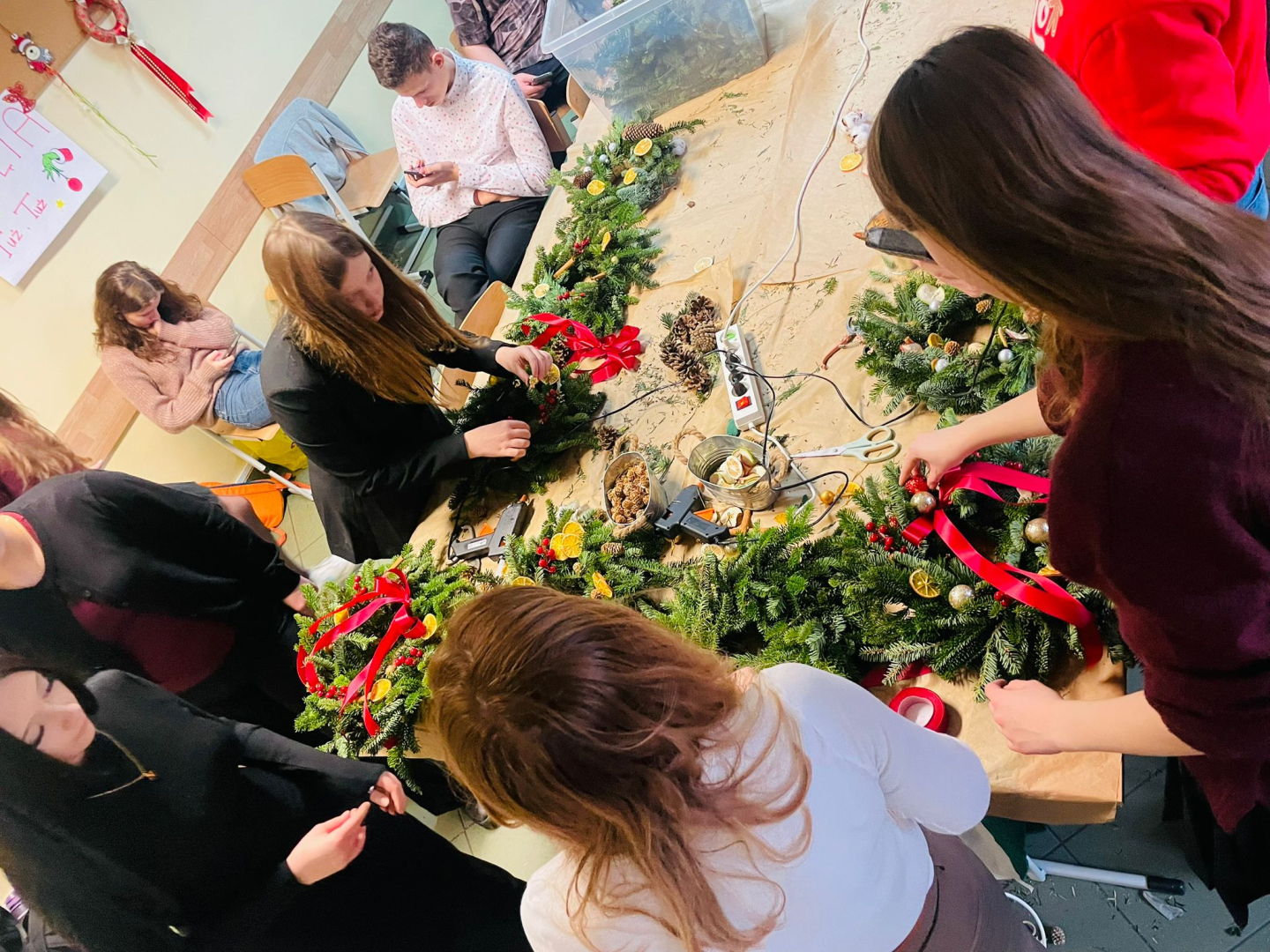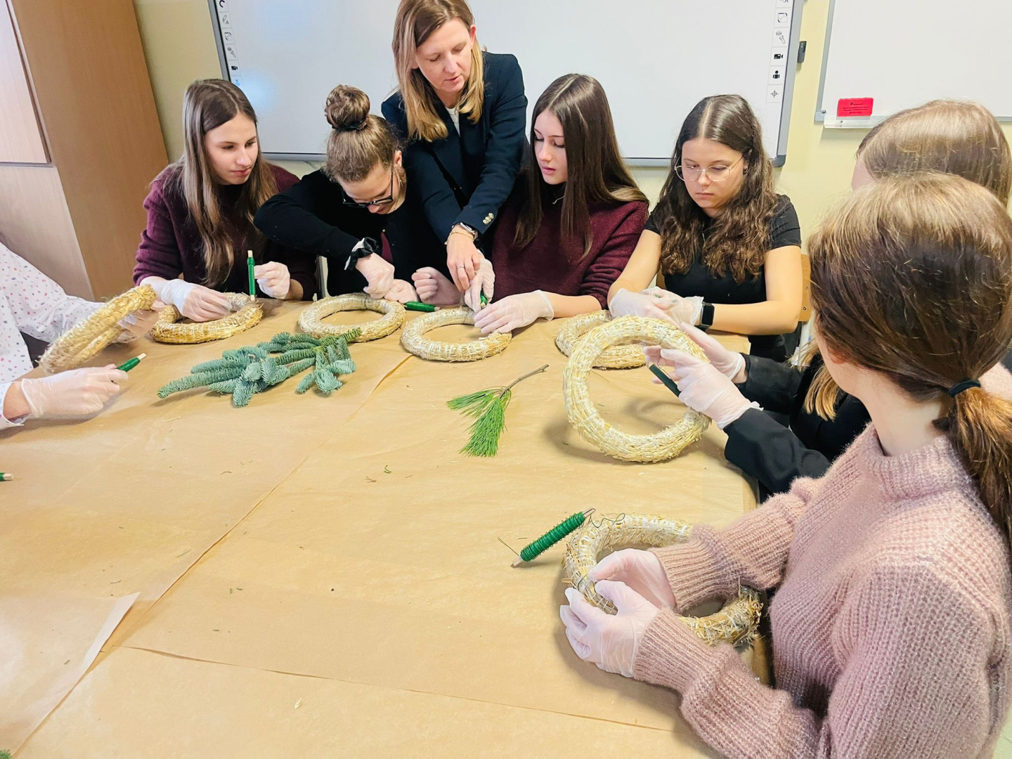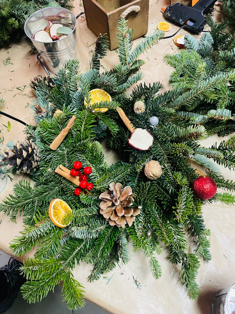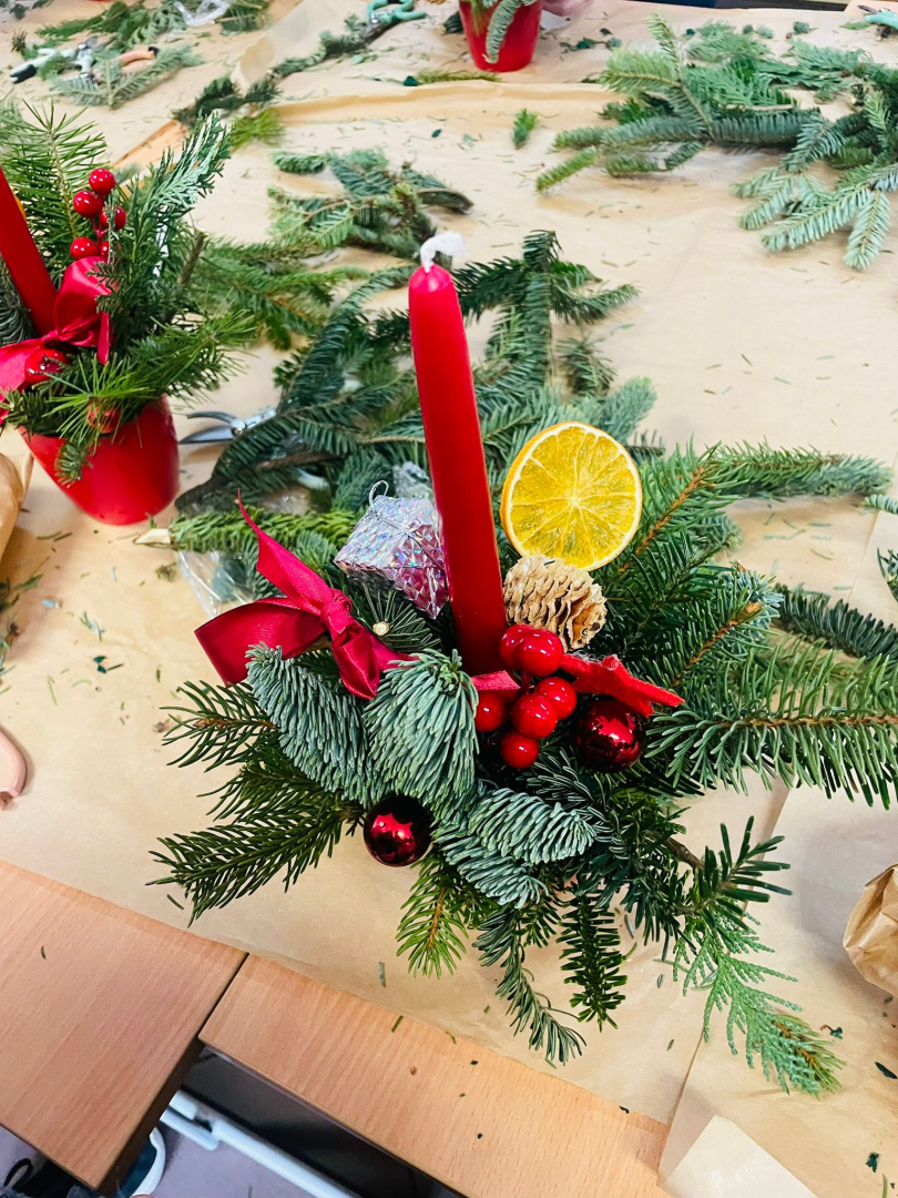 Warsztaty odbyły się w klasie, w miłej, ciepłej atmosferze, pełnej zapachu igliwia i świątecznych dekoracji. Był to czas twórczej pracy, radości i wspólnego przeżywania zbliżających się świąt Bożego Narodzenia. Powstałe stroiki z pewnością staną się piękną ozdobą domów uczniów i miłą pamiątką tego wyjątkowego spotkania.