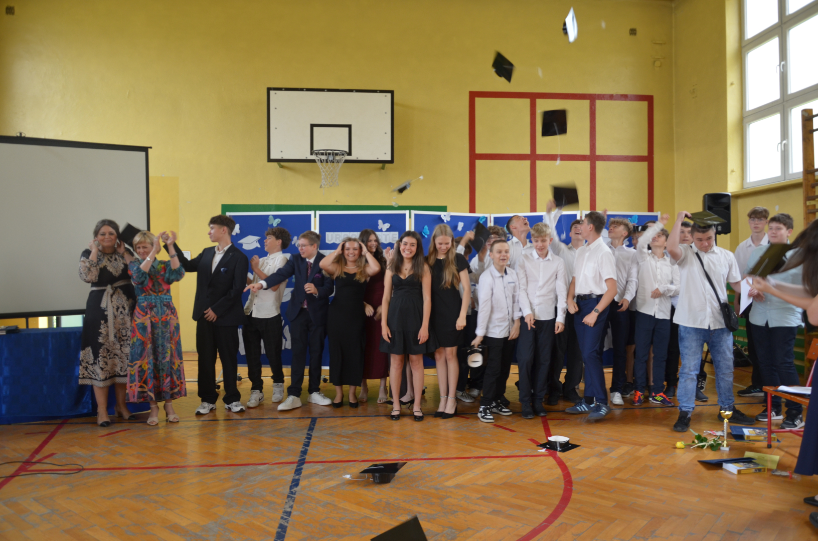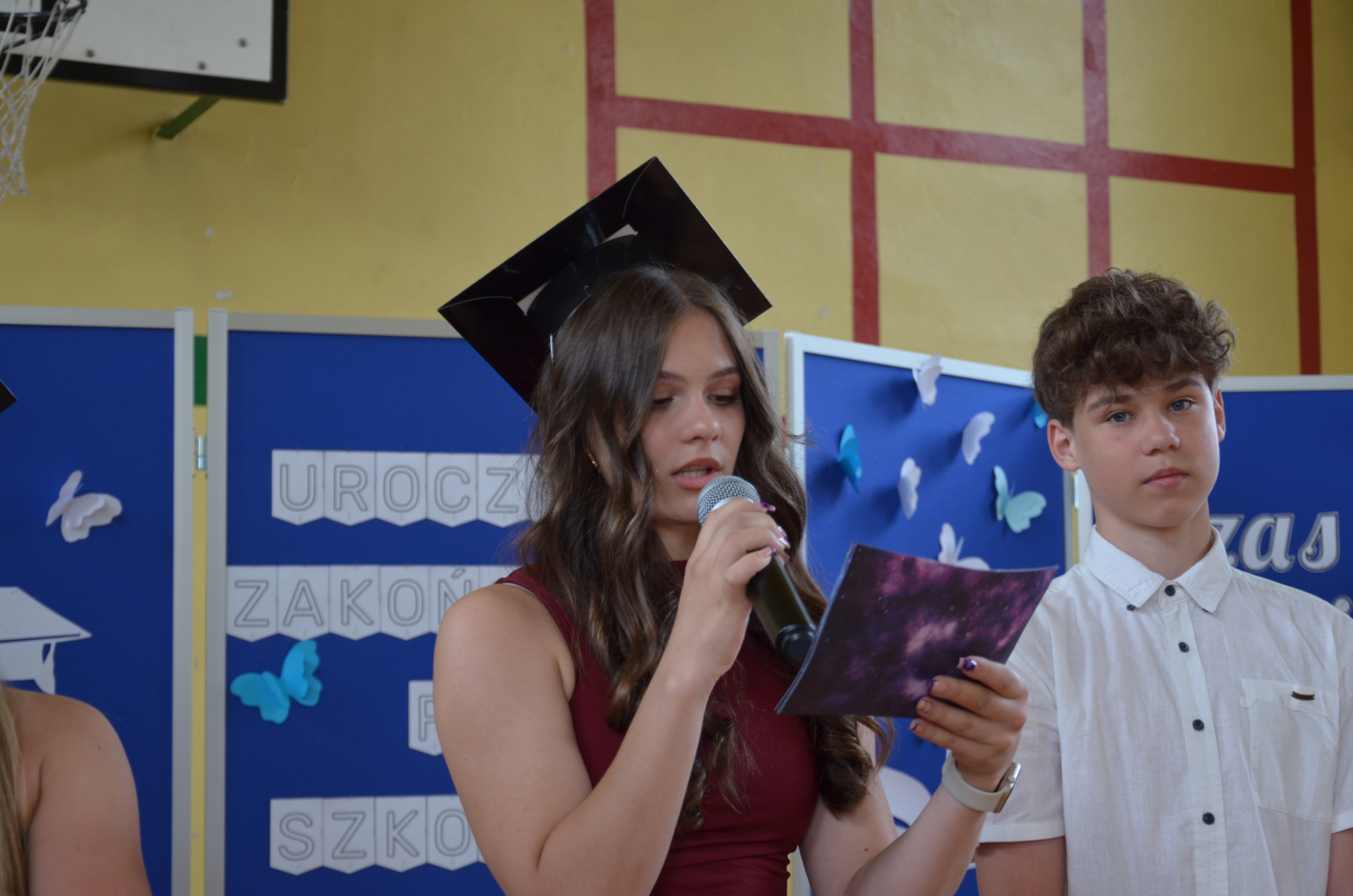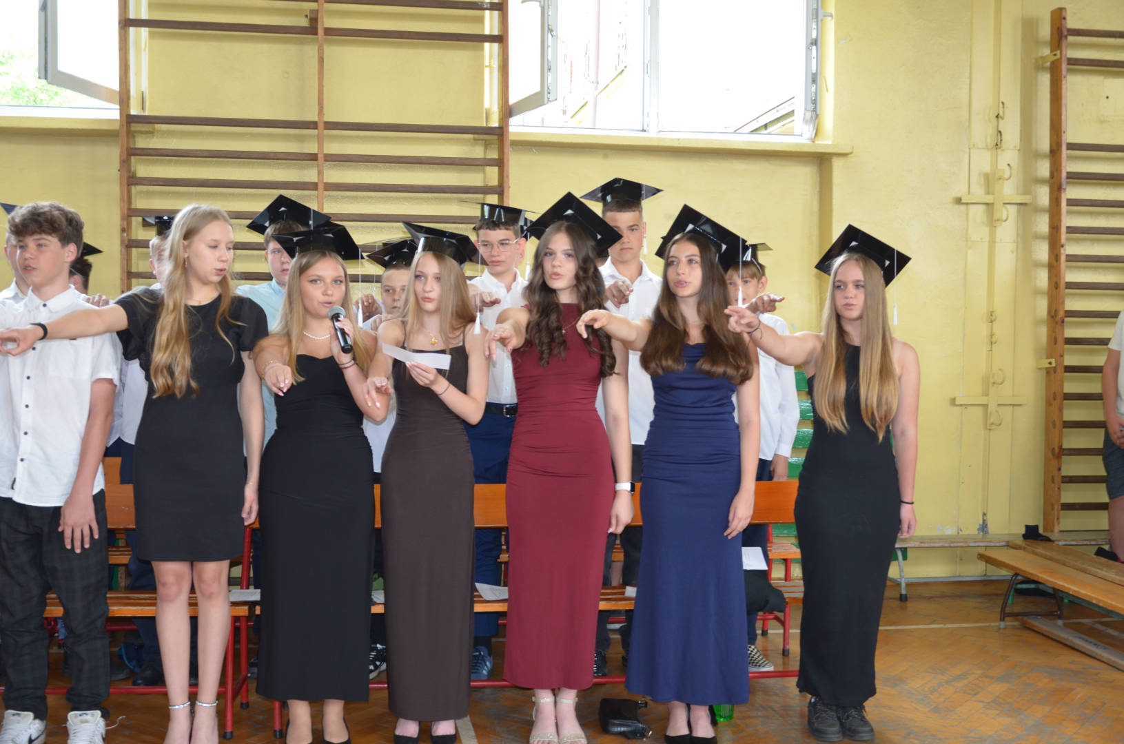Ten dzień był szczególny dla uczniów klas ósmych, którzy po raz ostatni przekroczyli próg naszej szkoły jako jej uczniowie. Wyjątkowo podniosłym momentem było – zgodne z ceremoniałem szkoły – uroczyste ślubowanie absolwentów. Podczas akademii padło wiele wzruszających słów, które były wyrazem wdzięczności wobec nauczycieli i wychowawców za trud włożony w edukację, cierpliwość, wsparcie oraz zrozumienie.