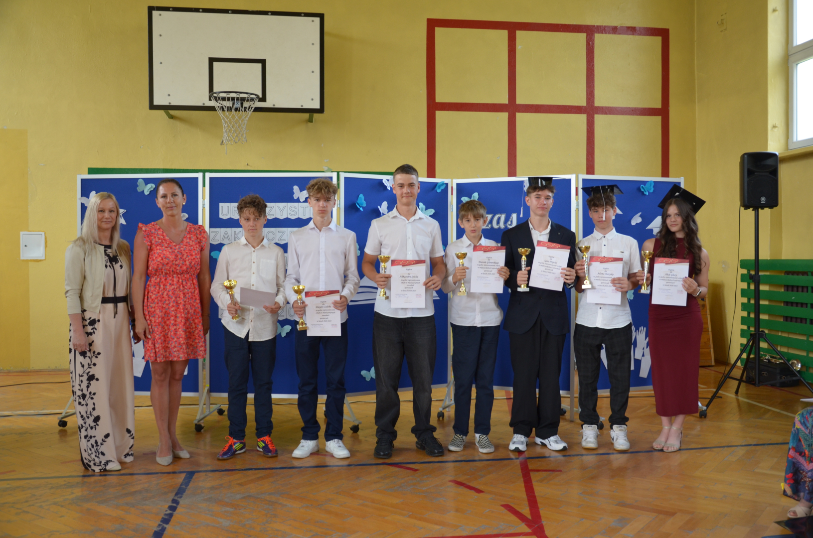 Podczas akademii wyróżniono również uczniów, którzy osiągnęli najwyższe wyniki w nauce lub sporcie. Dyplomy i nagrody trafiły do tych, którzy swoją systematyczną pracą i zaangażowaniem zasłużyli na szczególne uznanie. Najwyższe wyróżnienie – medal absolwenta „Najlepszy z najlepszych” – otrzymali ósmoklasiści, którzy przez ostatnie pięć lat utrzymywali wysoką średnią ocen oraz wykazywali się wzorowym zachowaniem.