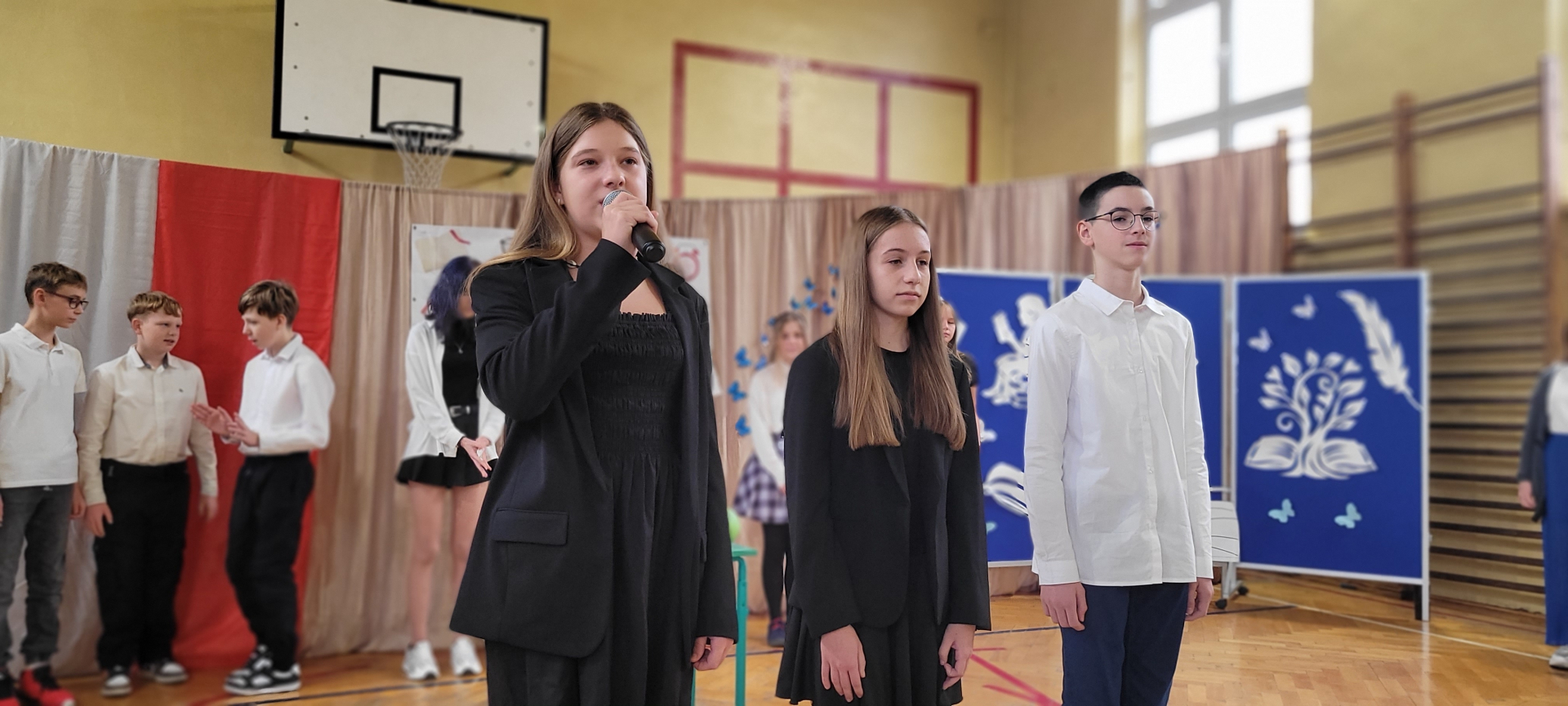 Część artystyczną przygotowali uczniowie klas 7a i 7b pod opieką swoich wychowawczyń pań Joanny Drozdowskiej-Skórskiej i Moniki Piskor oraz pani Nicoli Mzyk - nauczycielki języka polskiego. Uczniowie w sposób humorystyczny, a zarazem wzruszający, zaprezentowali scenki z życia szkoły, wiersze i piosenki będące wyrazem wdzięczności dla nauczycieli i wszystkich pracowników szkoły za ich codzienny trud i zaangażowanie w wychowanie młodych ludzi.