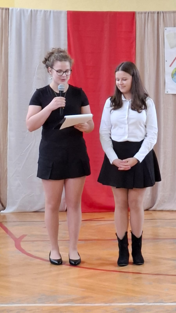 W drugiej części uroczystości opiekunki samorządu uczniowskiego - panie Agnieszka Kręgiel i Katarzyna Stachura wraz z przewodniczącą samorządu Nadią Spinek (kl. 7b) oraz wiceprzewodniczącymi Marią Jabłońską i Laurą Gawor (kl. 8a) wręczyły nagrody nauczycielom wybranym przez uczniów w szkolnym plebiscycie.