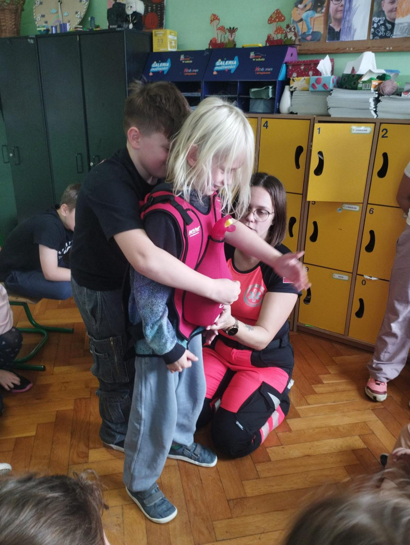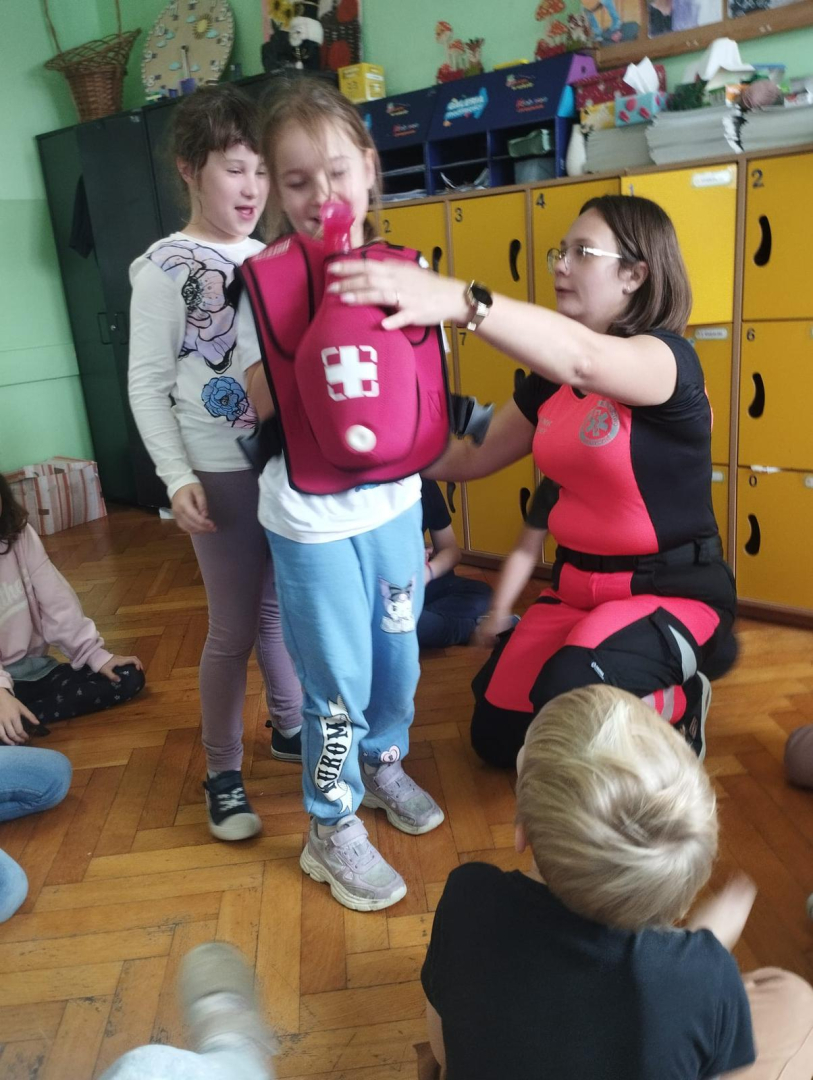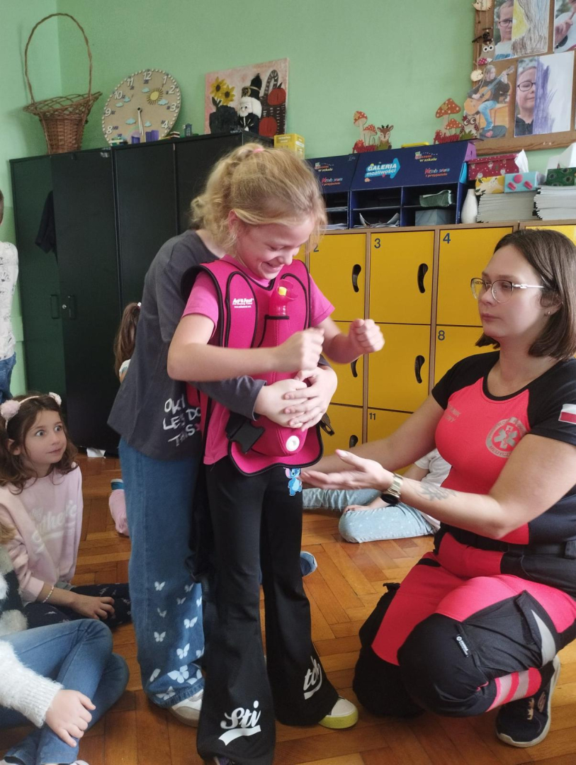 Podczas zajęć dzieci poznały najważniejsze zasady postępowania w sytuacji zadławienia – zarówno u dorosłych, jak i u dzieci. Dowiedziały się, jak rozpoznać, czy ktoś się dławi, jak reagować, gdy osoba może jeszcze kaszleć, oraz co robić, gdy przestaje oddychać. Uczniowie mieli także możliwość poćwiczenia na fantomie techniki uderzeń w plecy i ucisków nadbrzusza (tzw. manewru Heimlicha).