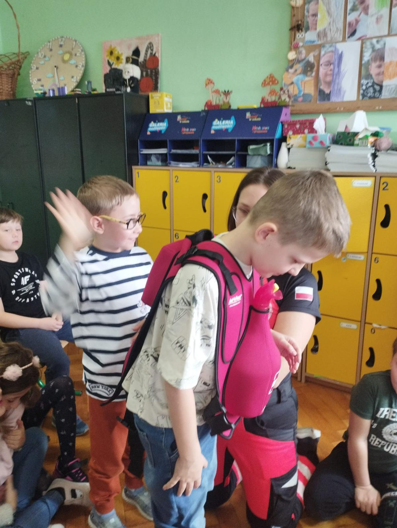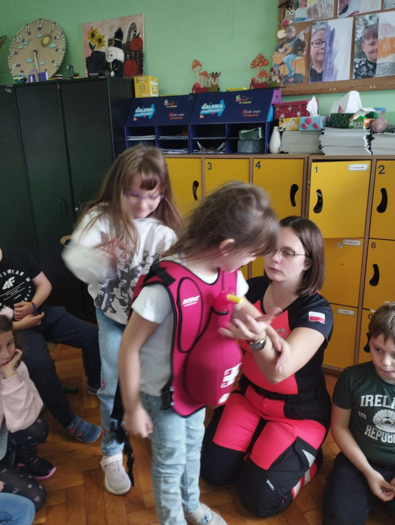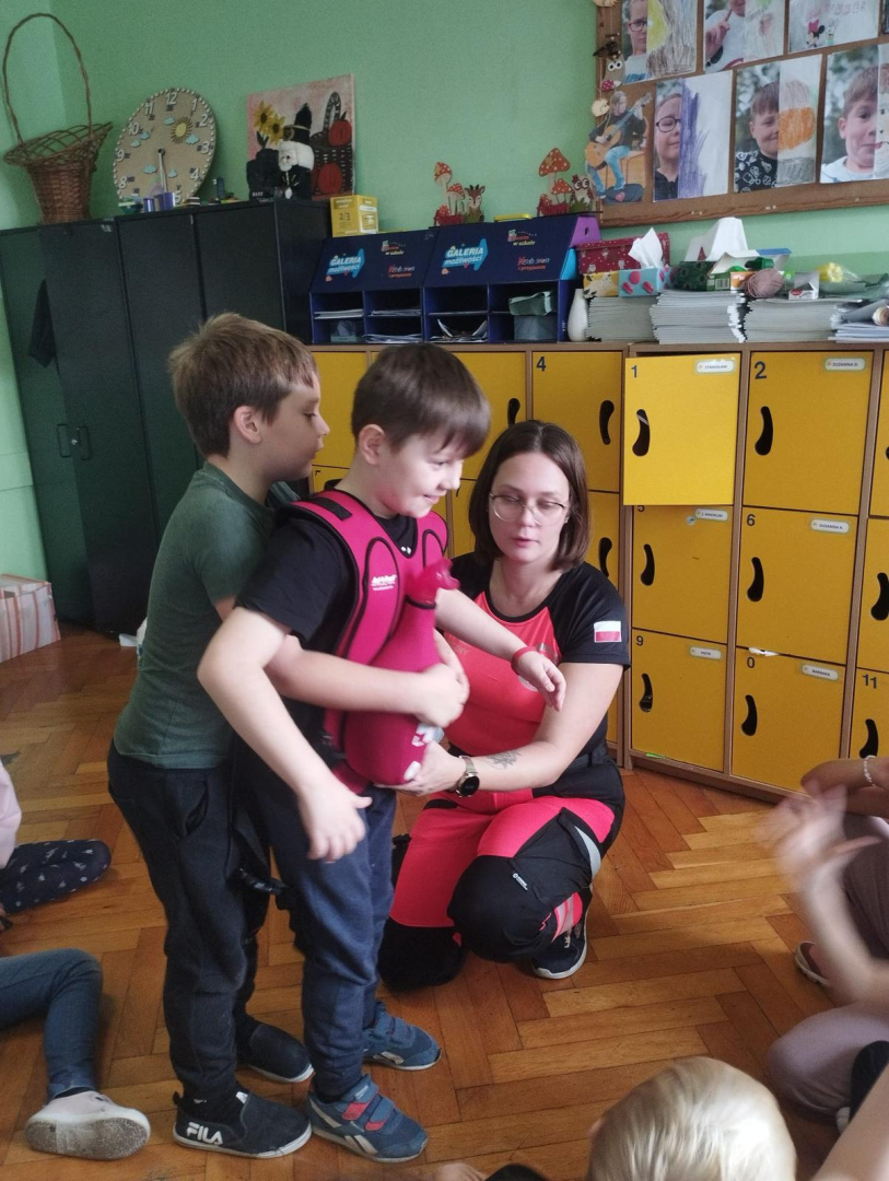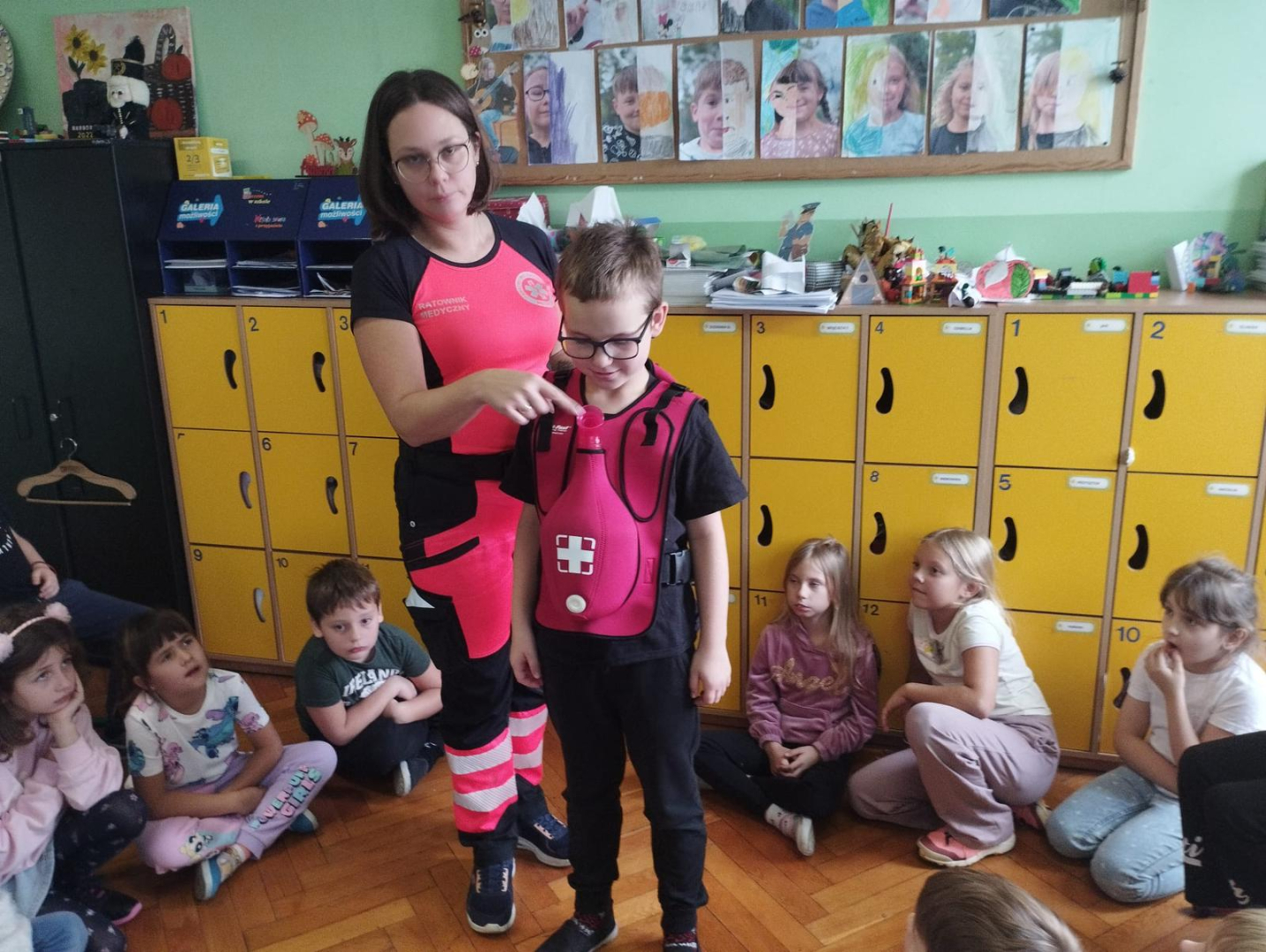 Podczas zajęć dzieci poznały najważniejsze zasady postępowania w sytuacji zadławienia – zarówno u dorosłych, jak i u dzieci. Dowiedziały się, jak rozpoznać, czy ktoś się dławi, jak reagować, gdy osoba może jeszcze kaszleć, oraz co robić, gdy przestaje oddychać. Uczniowie mieli także możliwość poćwiczenia na fantomie techniki uderzeń w plecy i ucisków nadbrzusza (tzw. manewru Heimlicha).