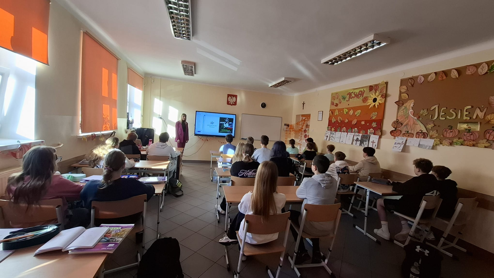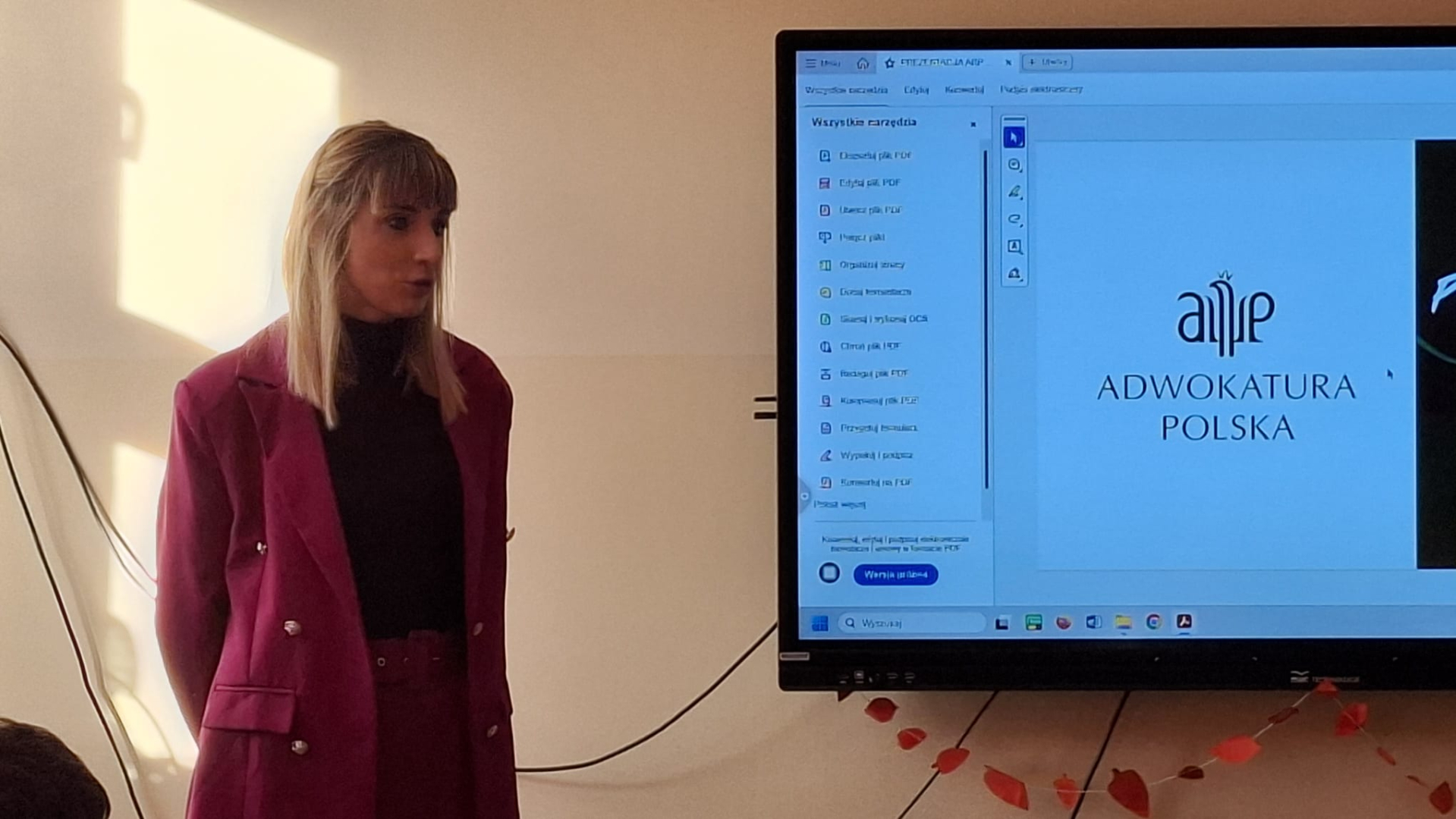 W czwartek, 30 października 2025 roku, w ramach ogólnopolskiej akcji edukacyjnej Adwokaci rozjaśniają prawo, mieliśmy przyjemność gościć Panią adwokat Justynę Skuzę, która poprowadziła niezwykle ciekawą i ważną prelekcję dla uczniów klas VII i VIII.