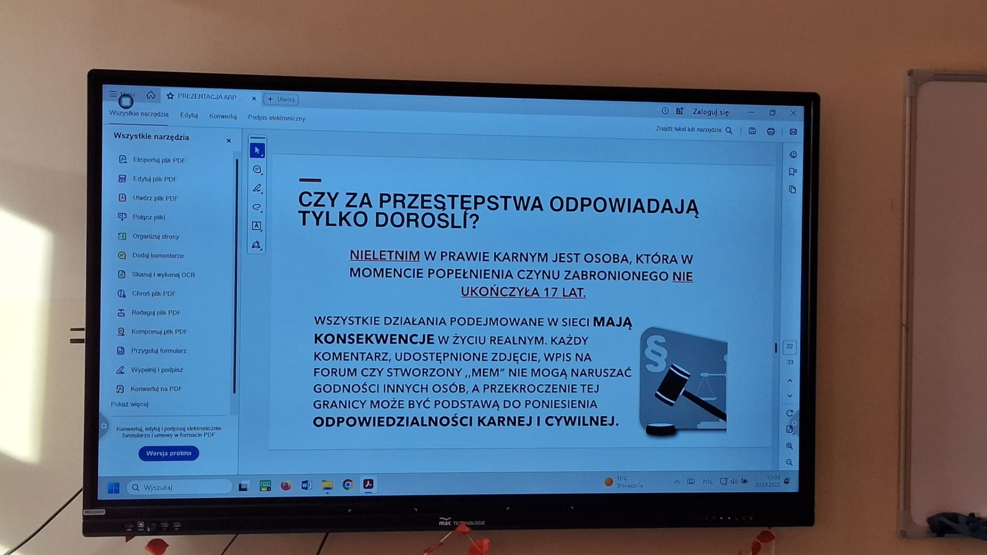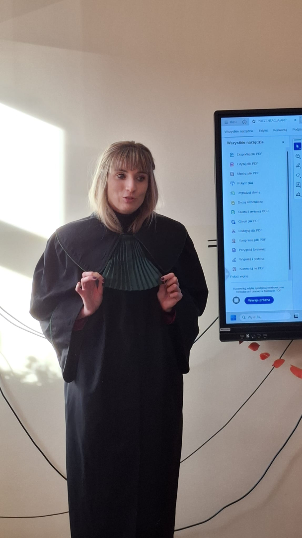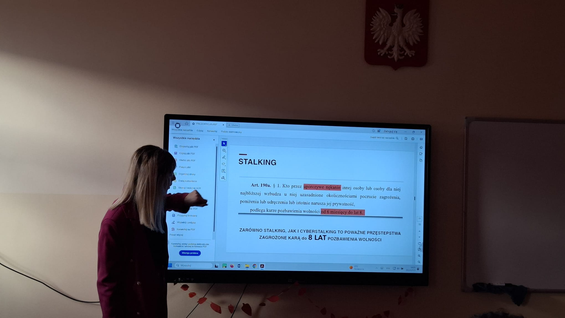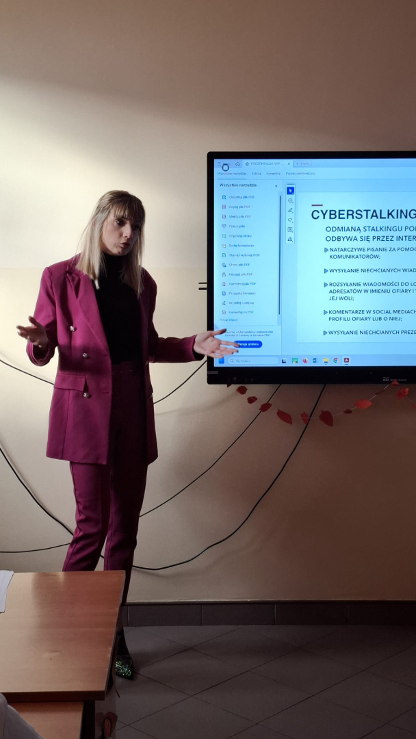 Bogata prezentacja, poparta przykładami z codziennego życia i praktyki zawodowej, pozwoliła uczniom lepiej zrozumieć, jak ważna jest świadomość prawna oraz odpowiedzialne korzystanie z Internetu i mediów społecznościowych.