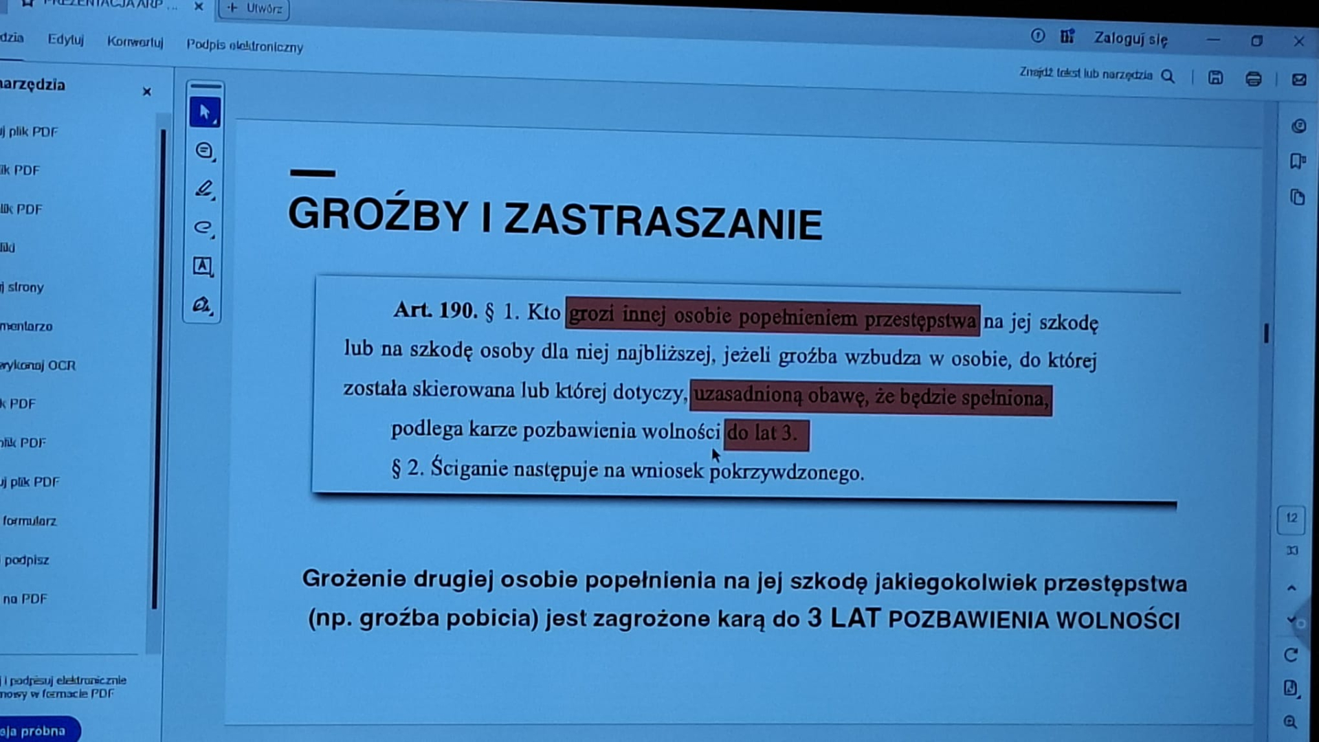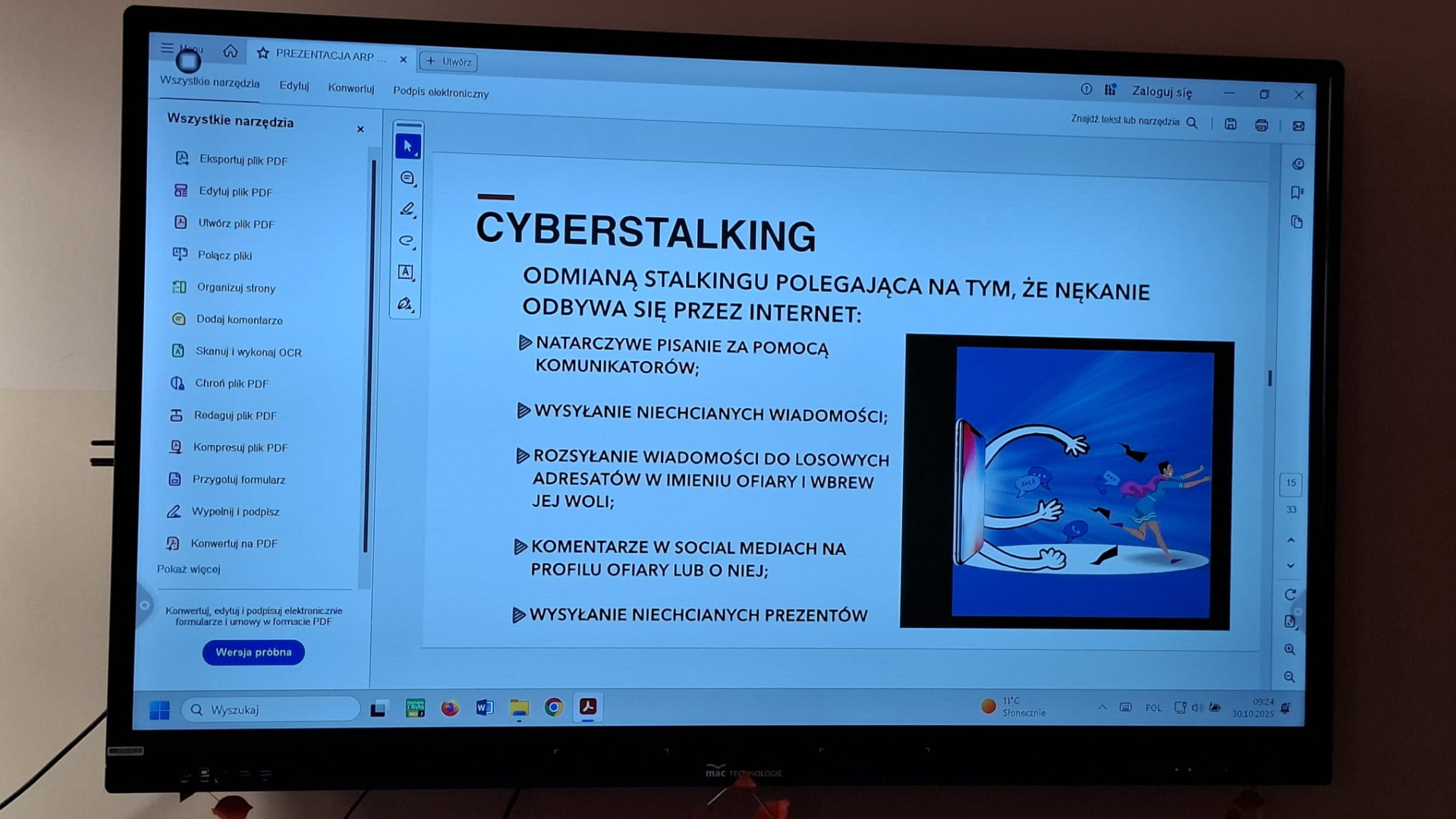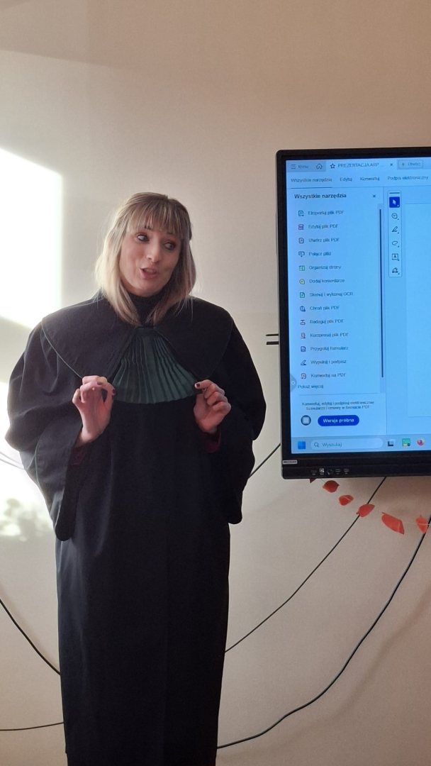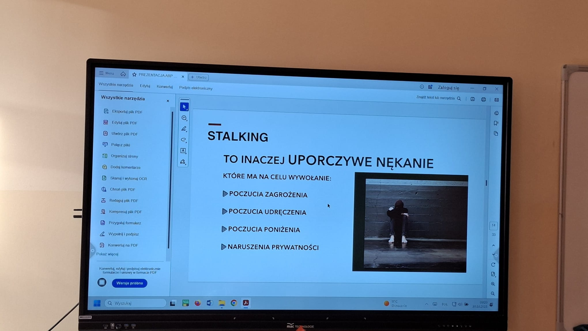 Bogata prezentacja, poparta przykładami z codziennego życia i praktyki zawodowej, pozwoliła uczniom lepiej zrozumieć, jak ważna jest świadomość prawna oraz odpowiedzialne korzystanie z Internetu i mediów społecznościowych.