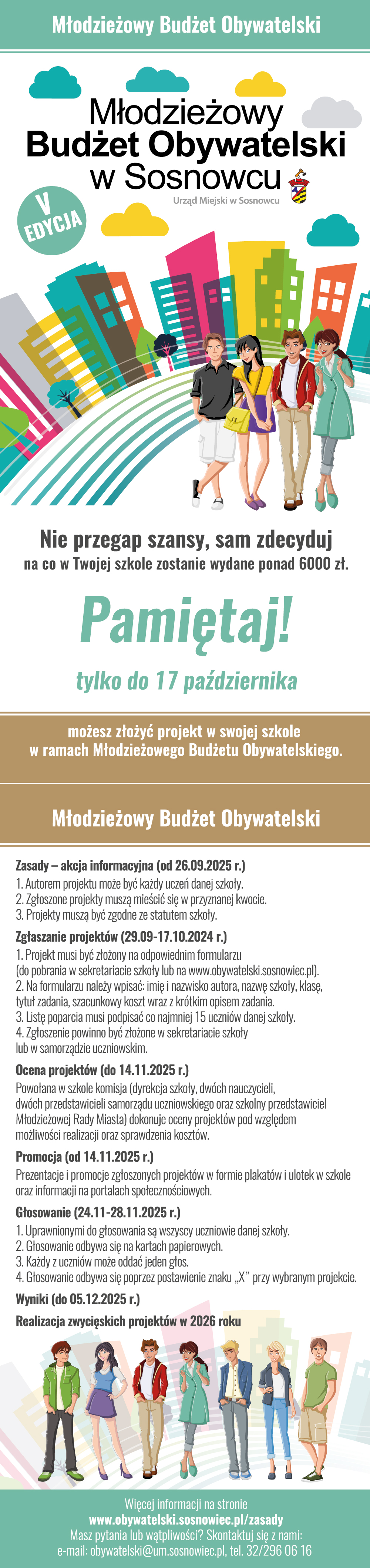 Uczniowie zgłosili własne pomysły. W dniach 24–28 listopada odbędzie się powszechne głosowanie, podczas którego uczniowie zadecydują, który z projektów zostanie zrealizowany. W tym roku szkolnym kwota do dyspozycji w ramach MBO wynosi 7280 zł.