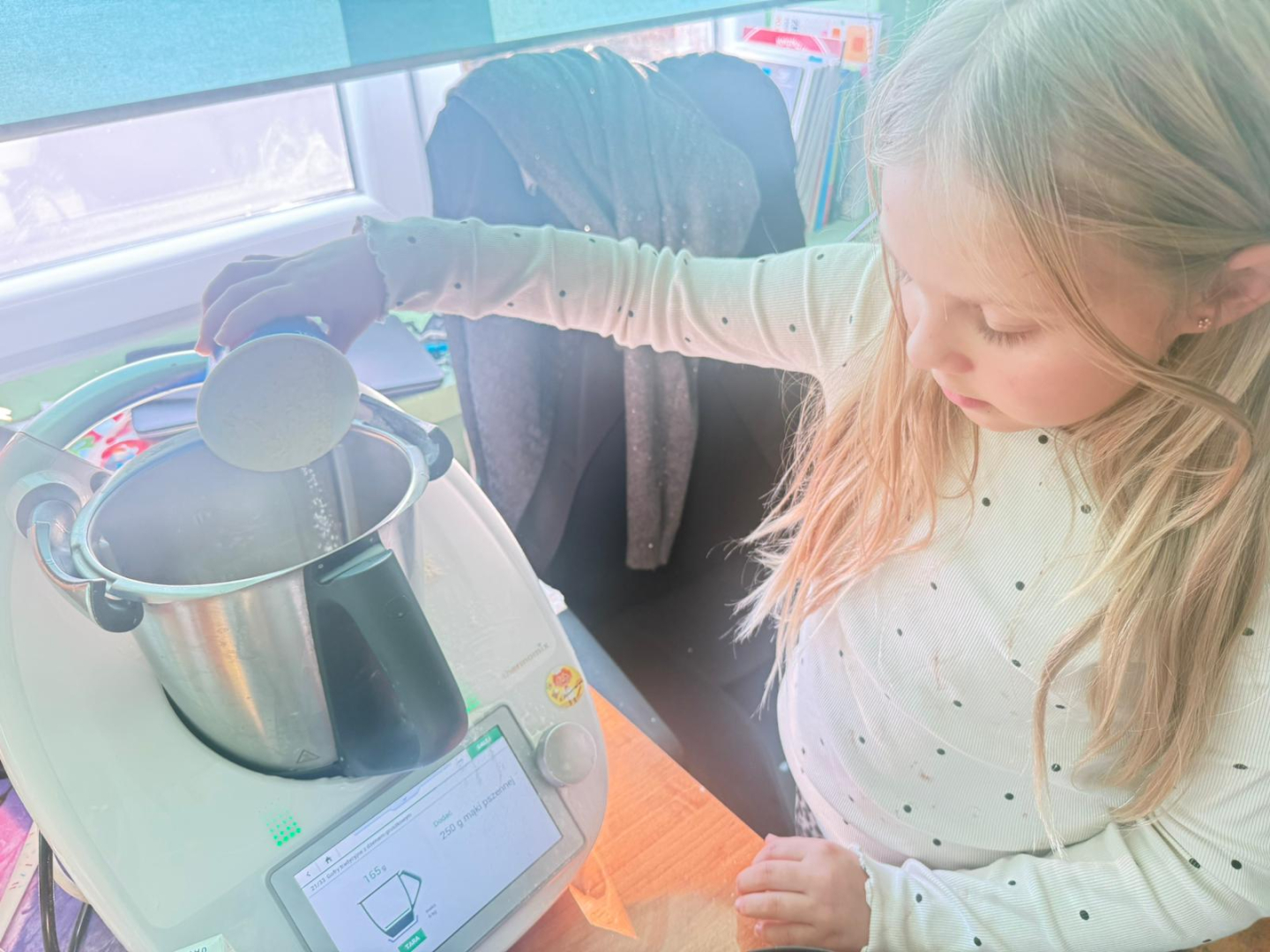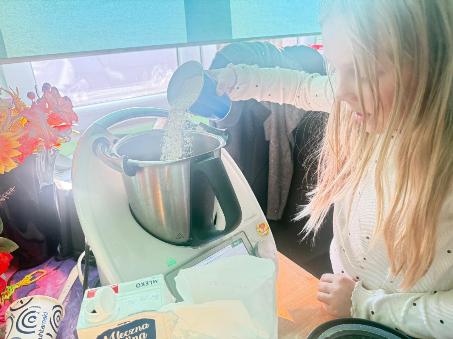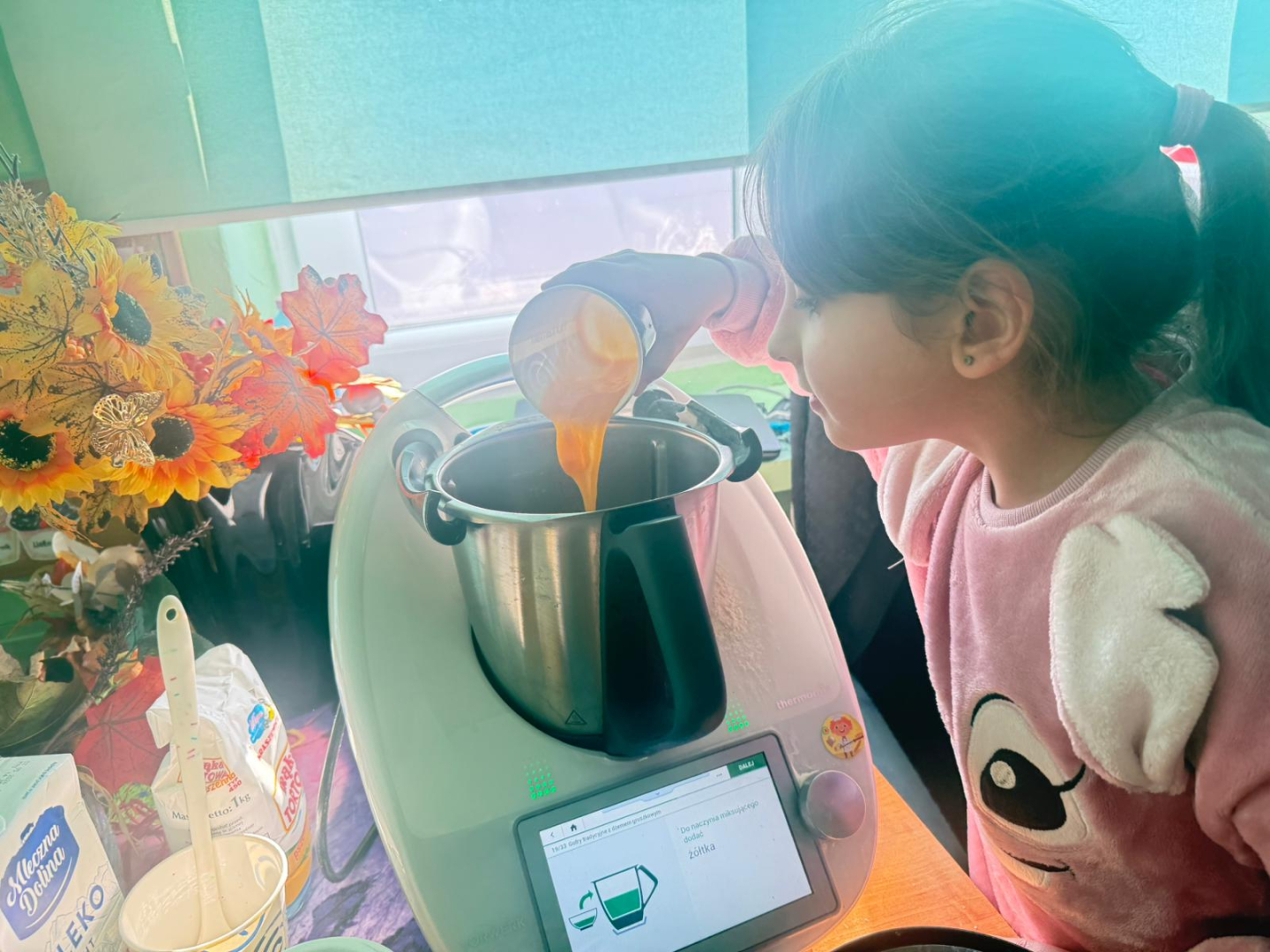 Już pierwszego dnia zajęć dodatkowych mali kucharze zmierzyli się z przygotowaniem pysznych, chrupiących gofrów. Okazało się, że nie jest to trudne zadanie — zwłaszcza gdy do dyspozycji mieliśmy Thermomix, gofrownicę oraz wszystkie potrzebne składniki.