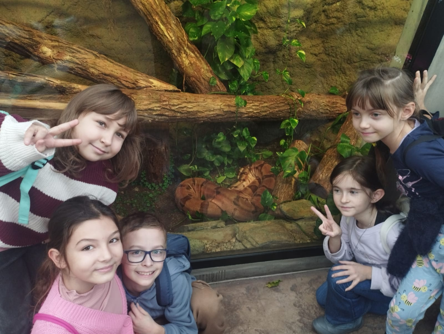 Uczniowie uczestniczyli także w warsztatach edukacyjnych, podczas których dowiedzieli się, jak dba się o egzotyczne zwierzęta, jakie mają potrzeby oraz dlaczego ochrona niektórych gatunków jest tak ważna. Zajęcia okazały się niezwykle interesujące i poszerzyły wiedzę przyrodniczą dzieci.
