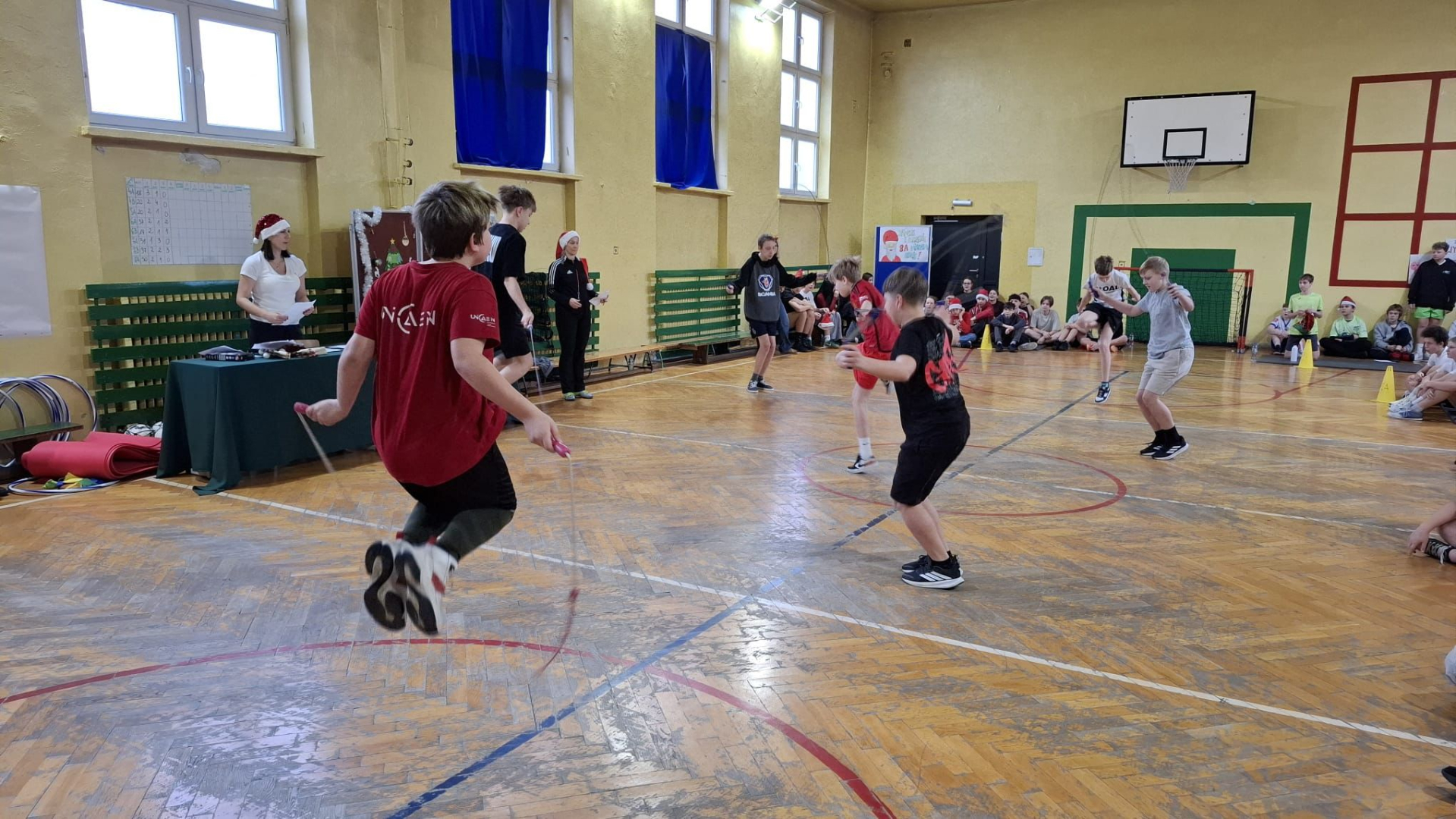 5 grudnia 2025 roku w naszej szkole odbył się Szkolny Turniej Mikołajkowy pod hasłem Wiedza + Sport, który już na stałe wpisał się w kalendarz szkolnych wydarzeń.