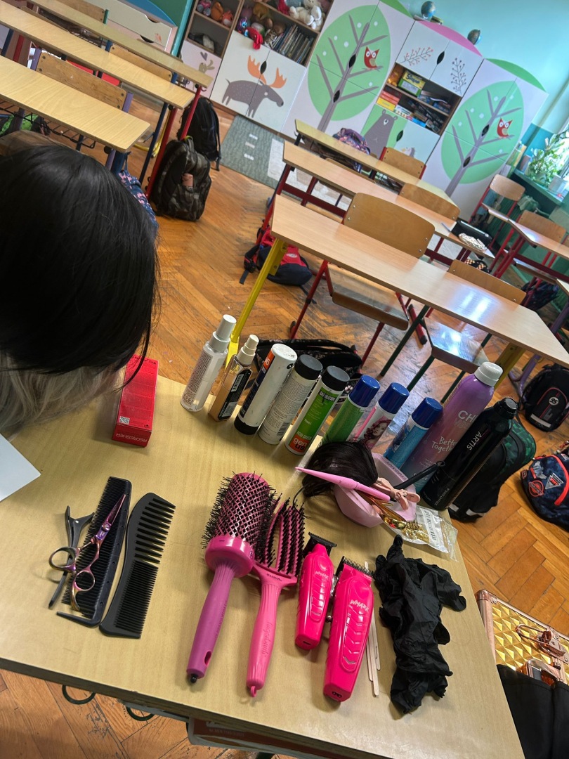 W ramach zajęć „Rodzic Ekspert” w klasie 3a gościła mama Dawida, pani Natalia, wykonująca zawód fryzjerki.