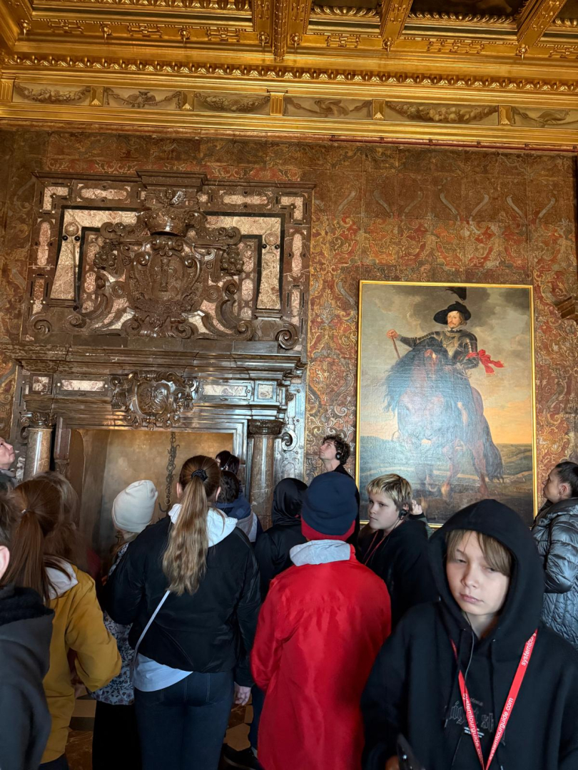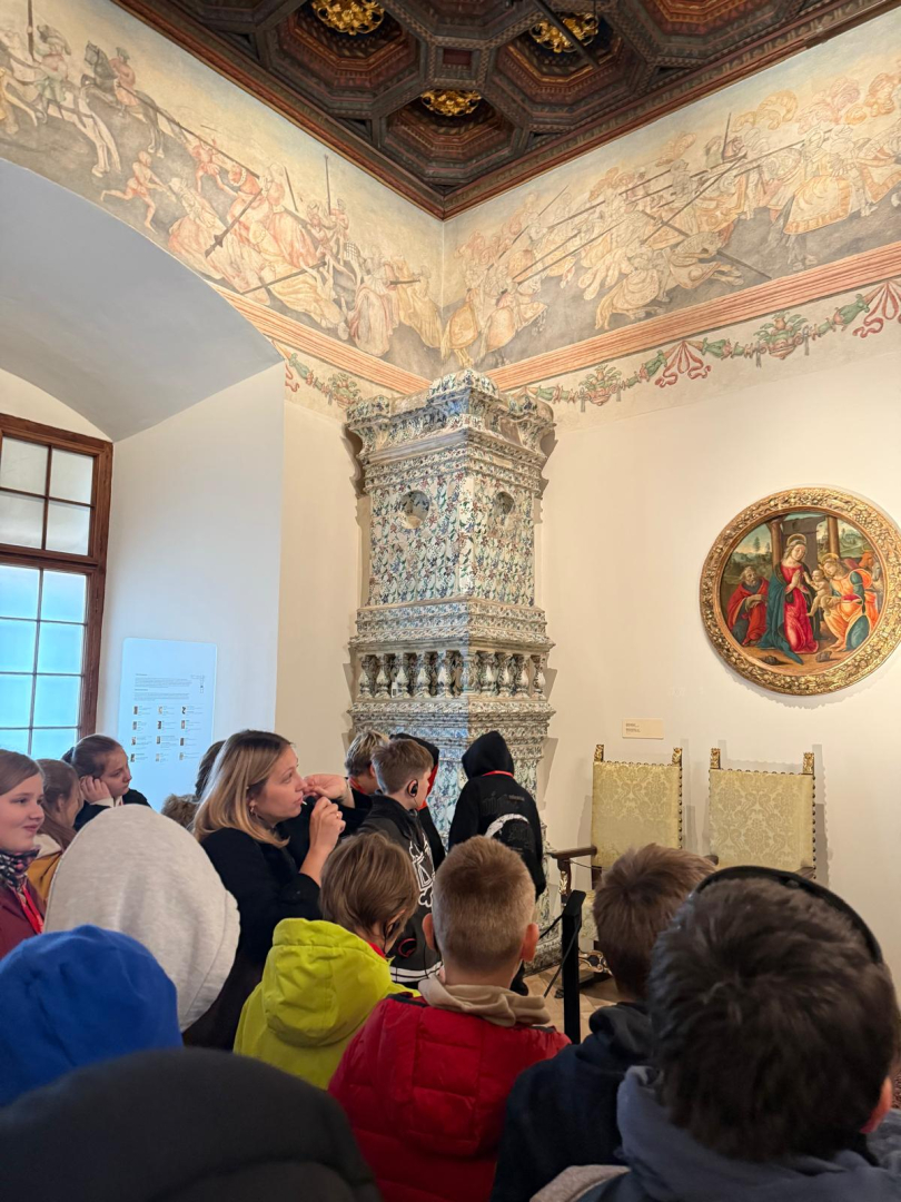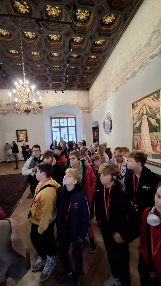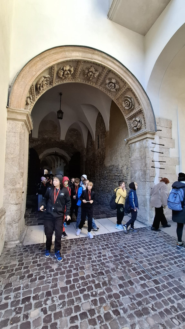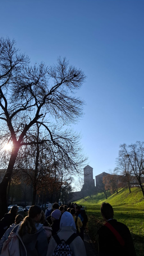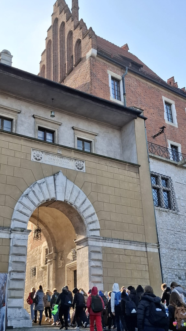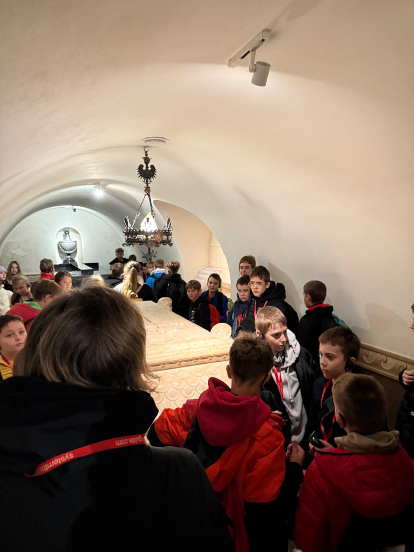 Naszą przygodę rozpoczęliśmy od wejścia na Wzgórze Wawelskie, miejsce o niezwykłej historii, będące przez wieki siedzibą polskich władców. Z przewodnikiem, który w ciekawy sposób opowiadał o dawnych czasach, zwiedziliśmy Komnaty Reprezentacyjne i Katedrę Wawelską. Tam mieliśmy okazję zobaczyć groby królewskie, znajdujące się w kryptach pod katedrą, gdzie spoczywają m.in. władcy z dynastii Jagiellonów, para prezydencka Lech i Maria Kaczyńscy oraz Józef Piłsudski. Wizyta w tym miejscu była dla nas cenną lekcją historii i patriotyzmu.