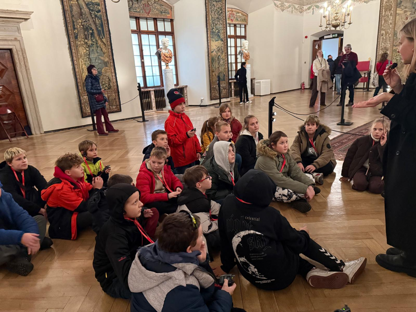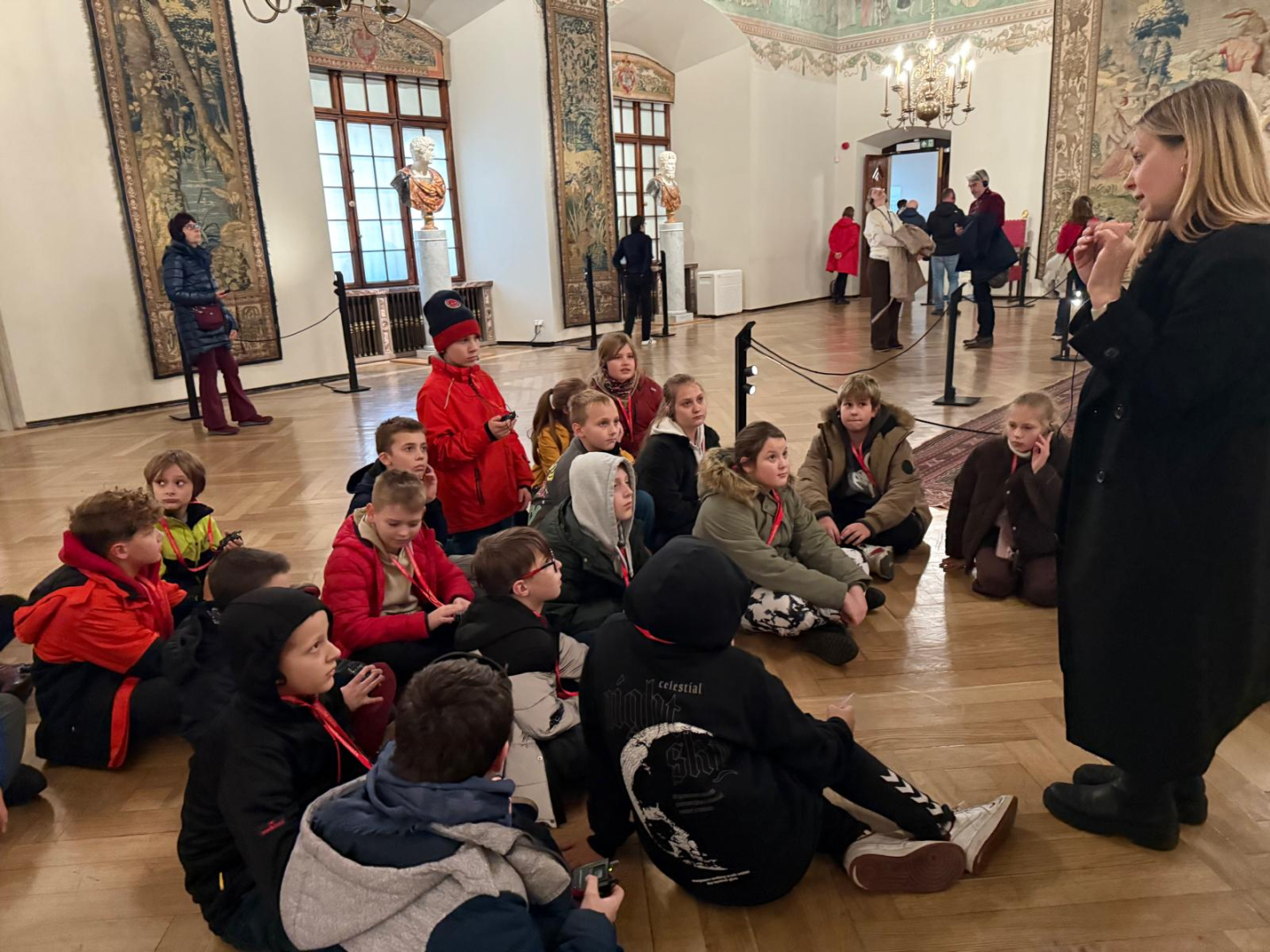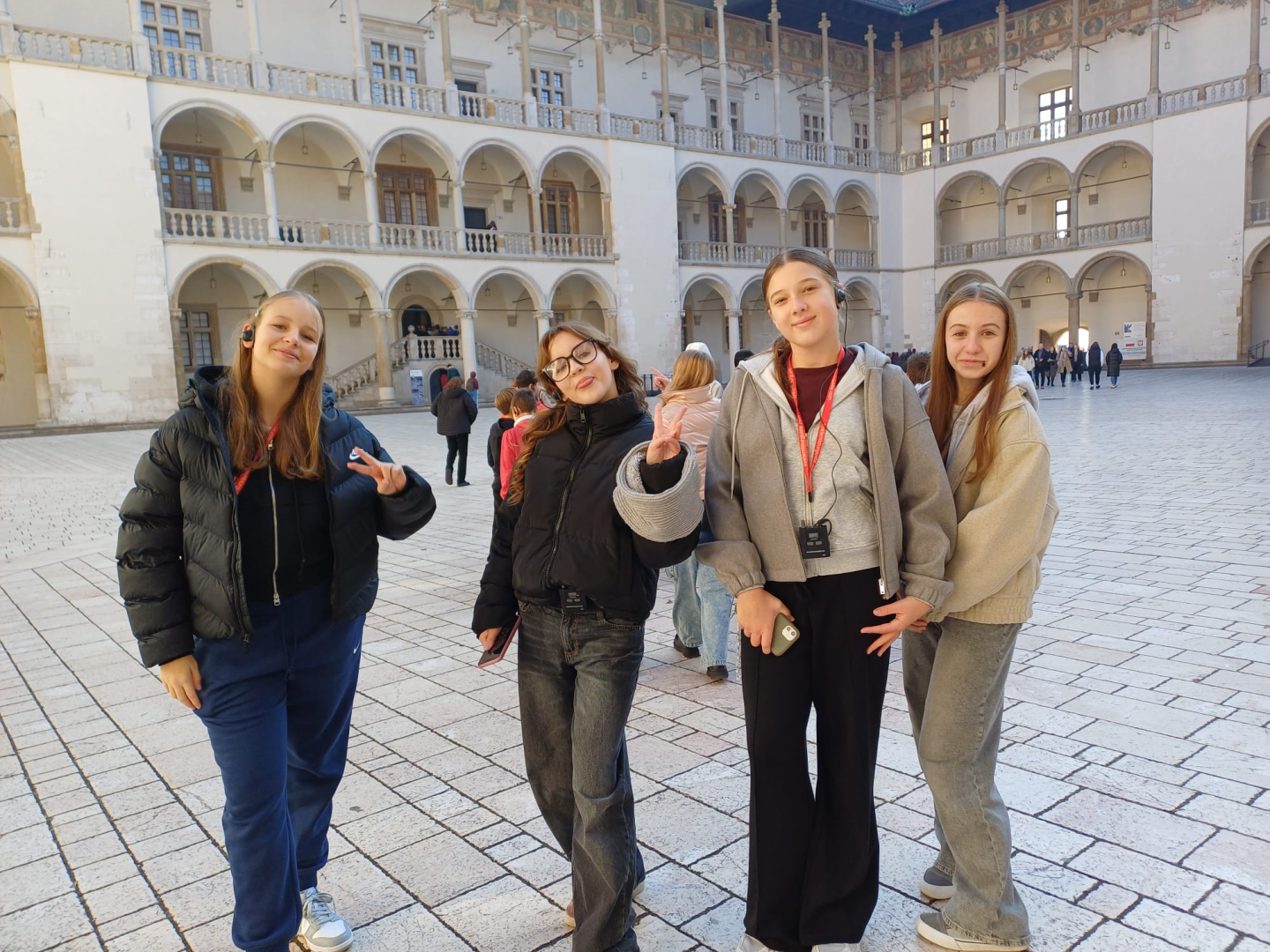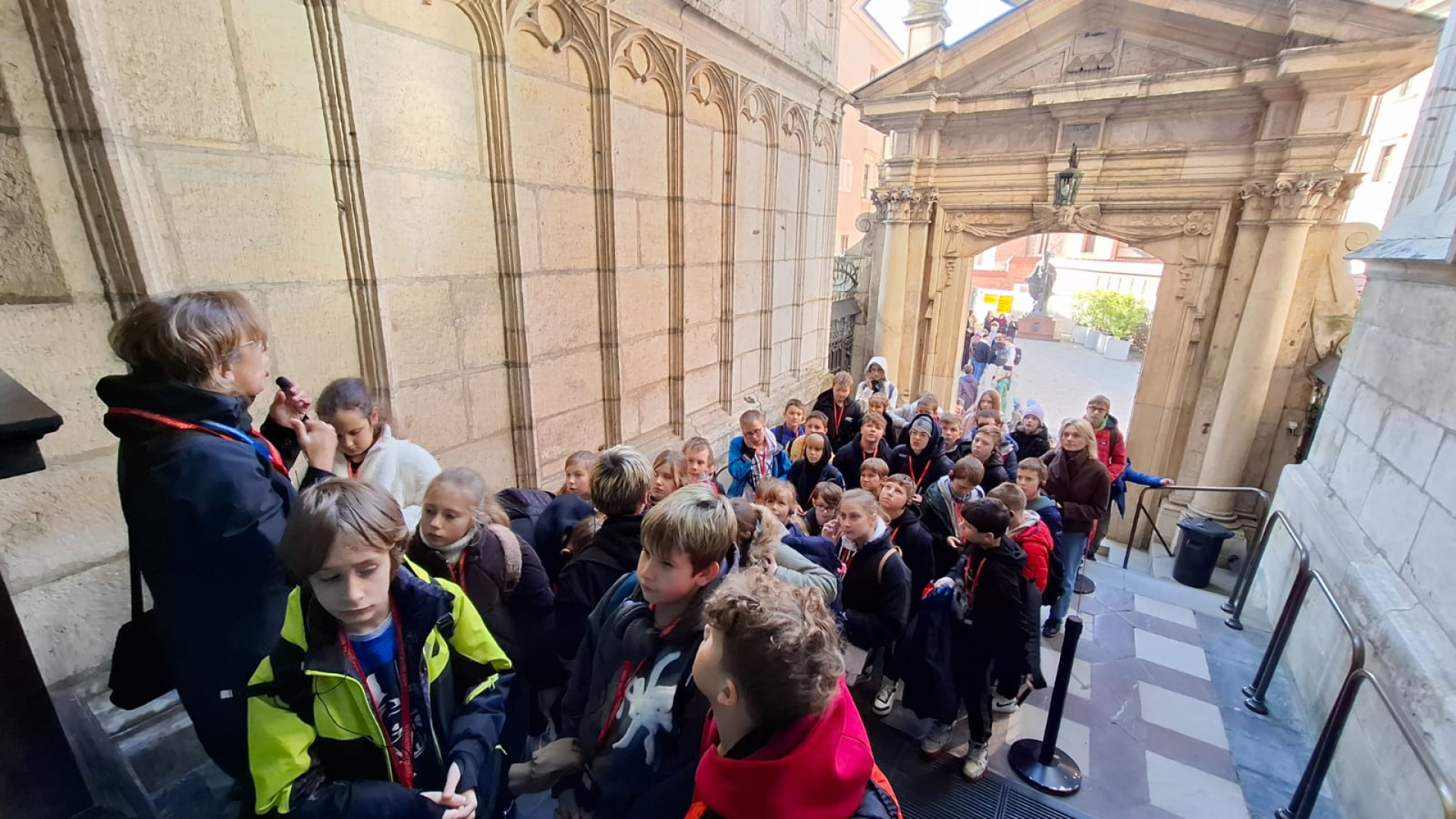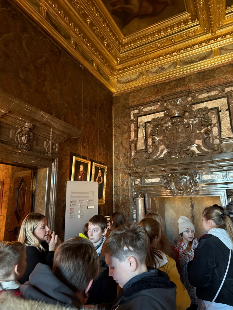 Naszą przygodę rozpoczęliśmy od wejścia na Wzgórze Wawelskie, miejsce o niezwykłej historii, będące przez wieki siedzibą polskich władców. Z przewodnikiem, który w ciekawy sposób opowiadał o dawnych czasach, zwiedziliśmy Komnaty Reprezentacyjne i Katedrę Wawelską. Tam mieliśmy okazję zobaczyć groby królewskie, znajdujące się w kryptach pod katedrą, gdzie spoczywają m.in. władcy z dynastii Jagiellonów, para prezydencka Lech i Maria Kaczyńscy oraz Józef Piłsudski. Wizyta w tym miejscu była dla nas cenną lekcją historii i patriotyzmu.