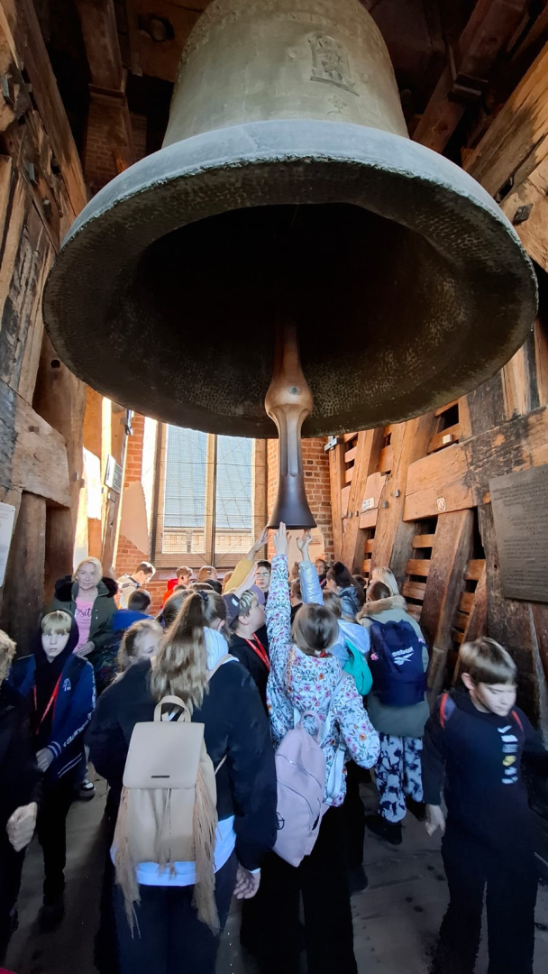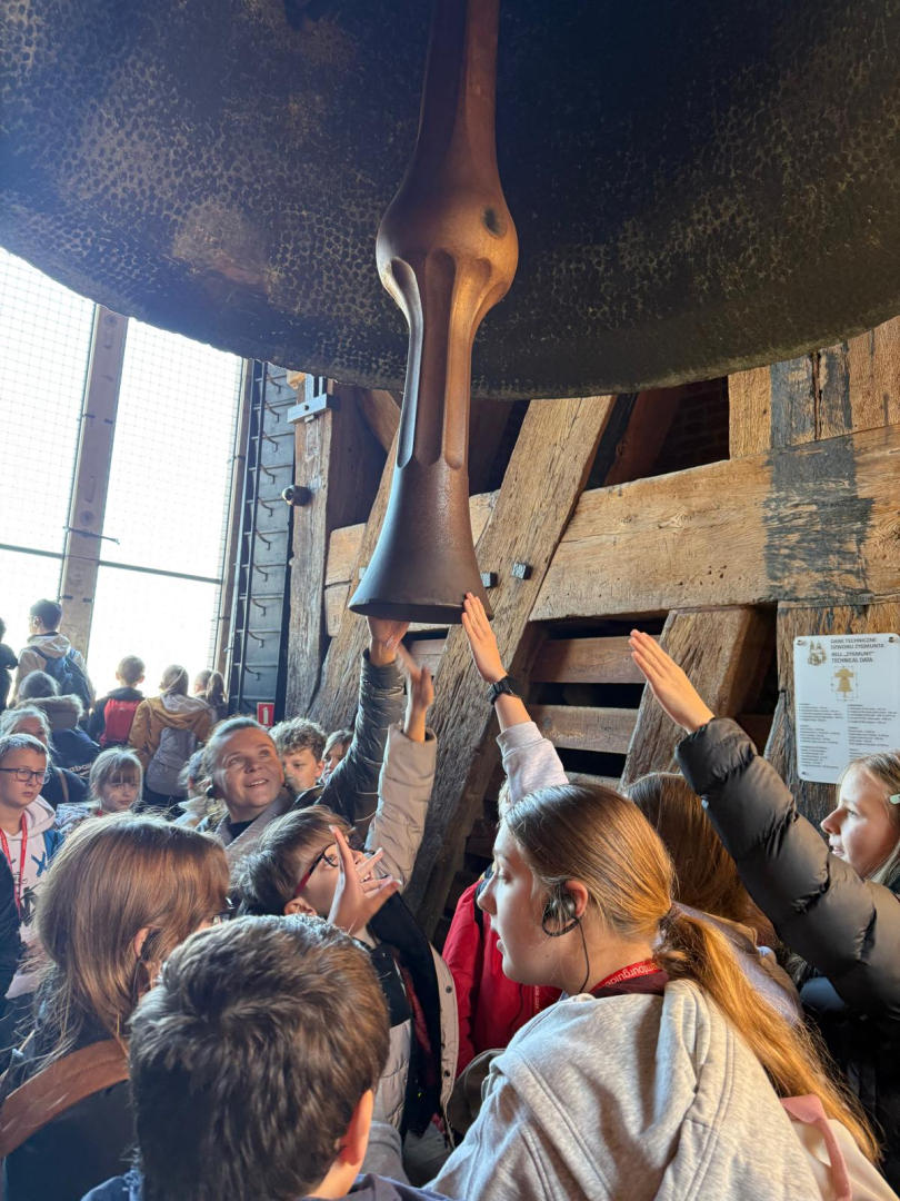 Kolejnym punktem zwiedzania było wejście na Wieżę Zygmuntowską, aby zobaczyć słynny Dzwon Zygmunta. Przewodnik opowiedział nam historię tego spiżowego kolosa, ufundowanego przez króla Zygmunta I Starego, który bije tylko w najważniejsze święta i podczas wyjątkowych wydarzeń dla Polski i Krakowa. Mimo zmęczenia wspinaczką, widok i możliwość dotknięcia dzwonu były tego warte.