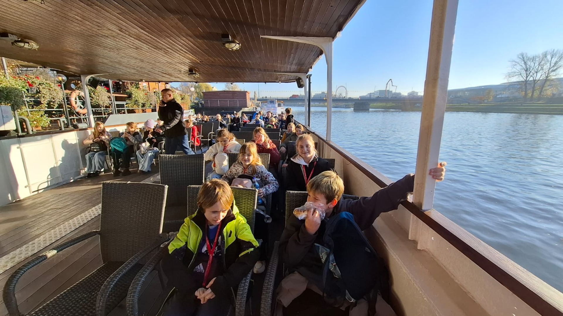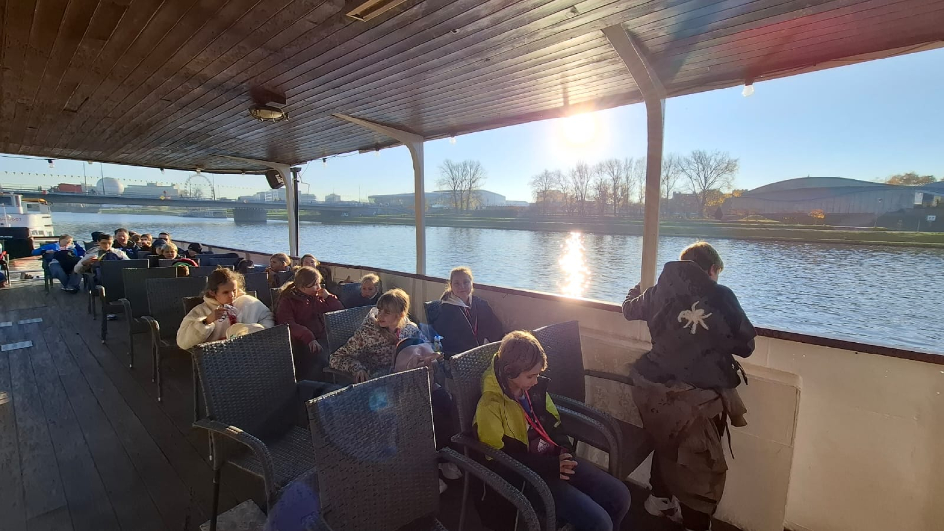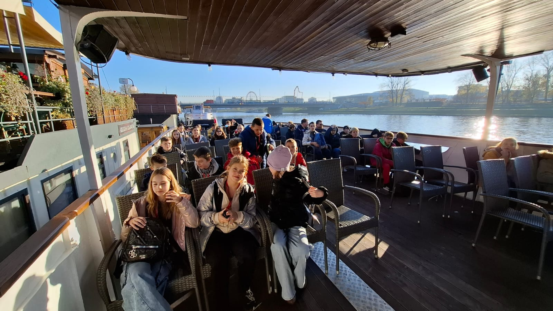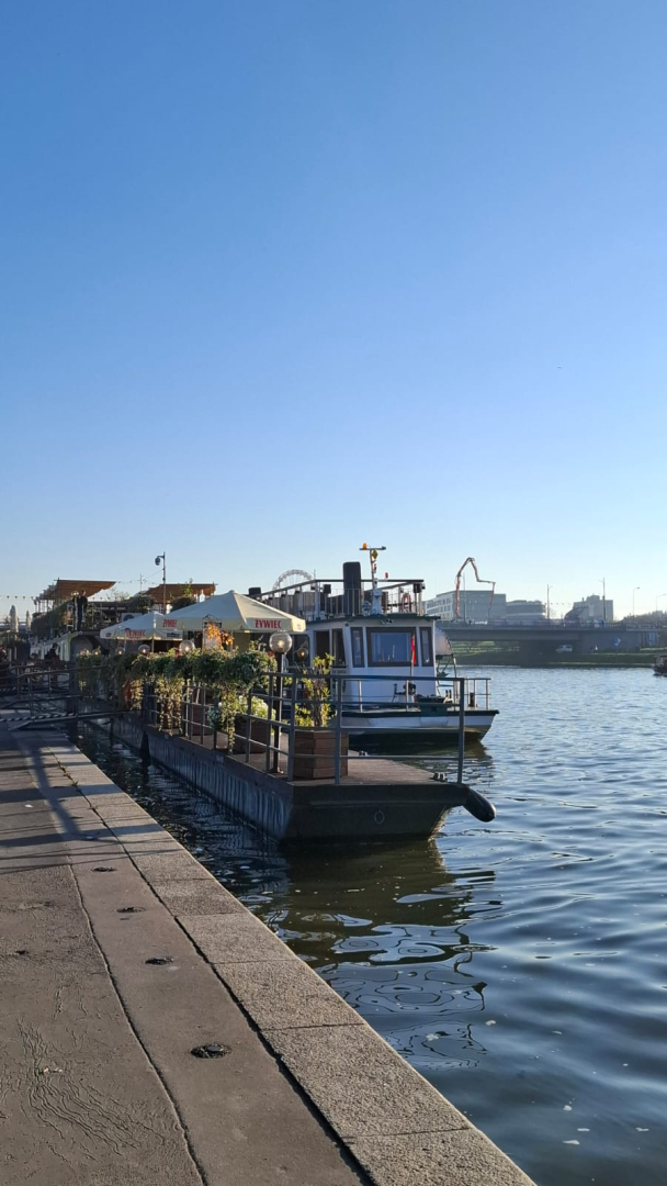 Po zejściu ze wzgórza i krótkim odpoczynku, udaliśmy się na bulwary wiślane, skąd rozpoczął się nasz rejs statkiem po Wiśle. Płynęliśmy wzdłuż malowniczych bulwarów, podziwiając panoramę miasta, Wawel oraz inne zabytki z perspektywy rzeki. Była to chwila relaksu i jedna z największych atrakcji dnia.
