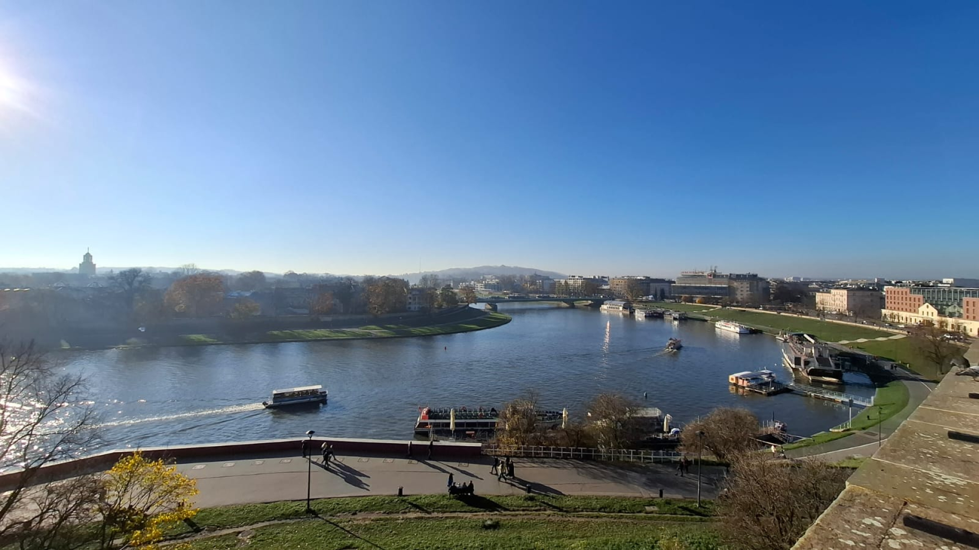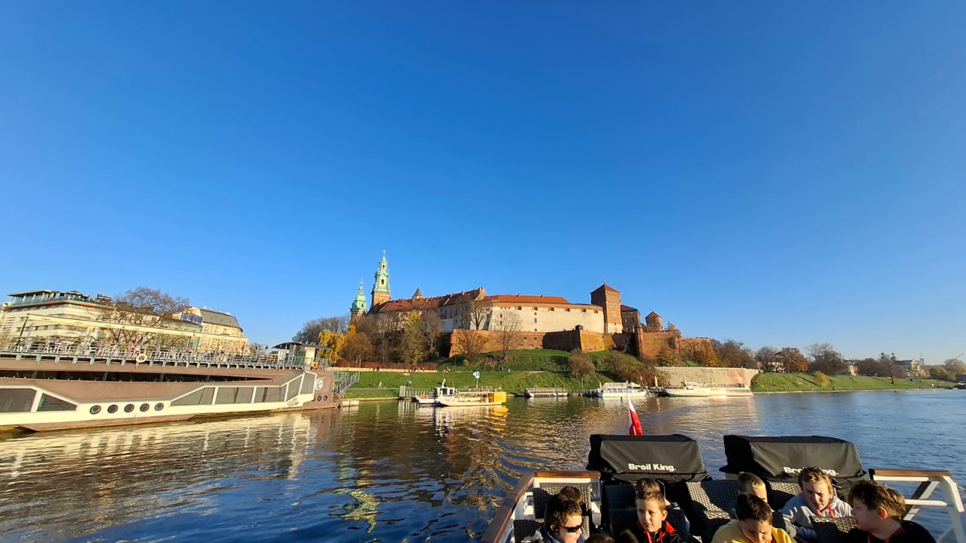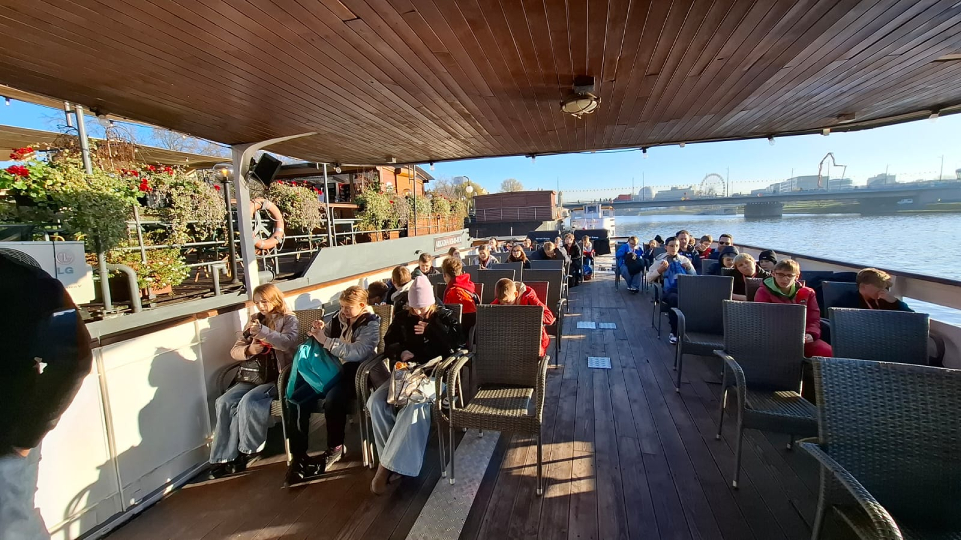 Po zejściu ze wzgórza i krótkim odpoczynku, udaliśmy się na bulwary wiślane, skąd rozpoczął się nasz rejs statkiem po Wiśle. Płynęliśmy wzdłuż malowniczych bulwarów, podziwiając panoramę miasta, Wawel oraz inne zabytki z perspektywy rzeki. Była to chwila relaksu i jedna z największych atrakcji dnia.