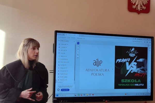 Szkoła wolna od hejtu - spotkanie z Panią Adwokat Justyną Skuzą w naszej szkole